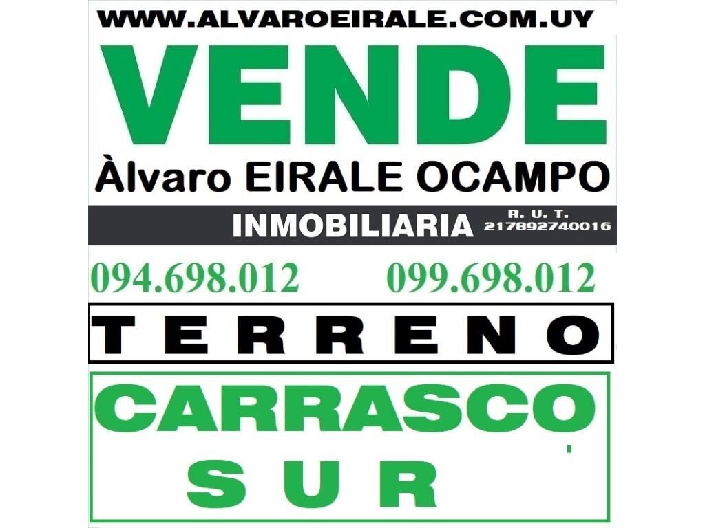 AEO*26045* CARRASCO SUR: J. B. ALBERDI ESPECTACULAR PREDIO CON TERRENO de 15.00 X 70.00= 1.000 m2 FRENTE X 2 CALLES. ZONA RESIDENCIAL y COMERCIAL. *VENDE INMOBILIARIA: Álvaro EIRALE OCAMPO (2025.TODOS los TERRENOS) 099.698.012 y 094.698.012 SERVICIOS INMOBILIARIOS en URUGUAY desde 1986. [email protected] https://ALVAROEIRALE.COM.UY Comisión Inmobiliaria 3 % + IVA RUT217892740016