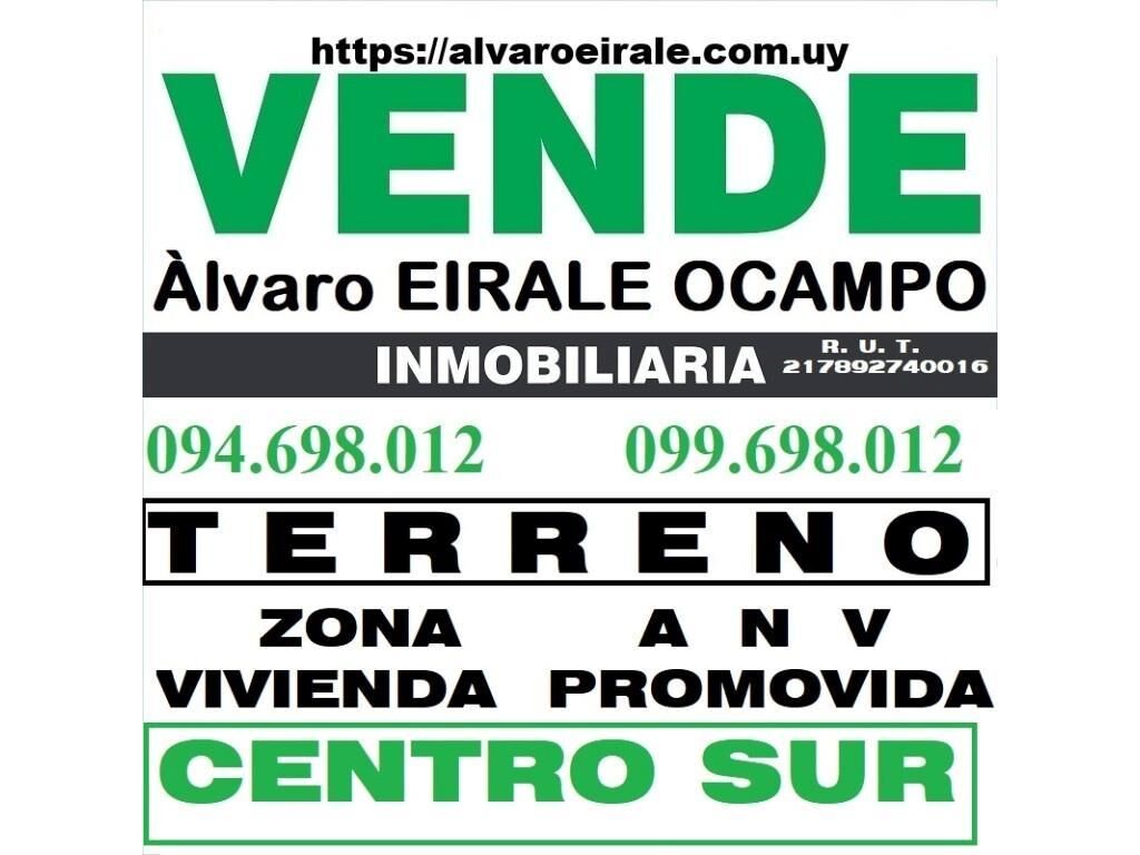 AEO*26153* CENTRO SUR: AQUILES LANZA casi CANELONES TERRENO: 12.00 X 42.00= 490 m2 ALTURA 27 mts. GALIBO. ZONA A N V para VIVIENDA PROMOVIDA. *VENDE INMOBILIARIA: Álvaro EIRALE OCAMPO (2025.TODOS los TERRENOS) 099.698.012 y 094.698.012 Servicios Inmobiliarios en Uruguay desde 1986 https://ALVAROEIRALE.COM.UY Comisión Inmobiliaria 3 % + IVA RUT217892740016