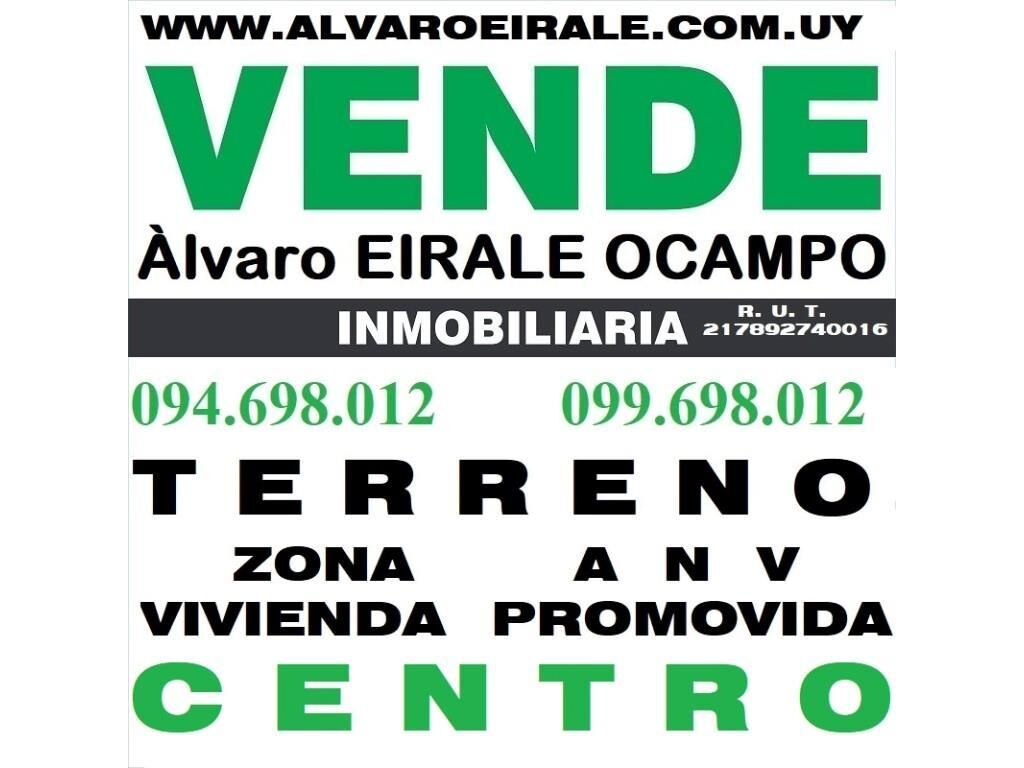 AEO*26225* ZONA ANV CENTRO : COLONIA casi RIO BRANCO ZONA A N V para VIVIENDA PROMOVIDA. MEDIDAS: 9.00 X 33.00 = 400 m2 ALTURA 27 mts. GALIBO. *VENDE INMOBILIARIA: Álvaro EIRALE OCAMPO (2025.TODOS los TERRENOS) 099.698.012 y 094.698.012 https://ALVAROEIRALE.COM.UY Servicios Inmobiliarios en Uruguay desde 1986. [email protected] Comisión Inmobiliaria 3 % + IVA RUT217892740016