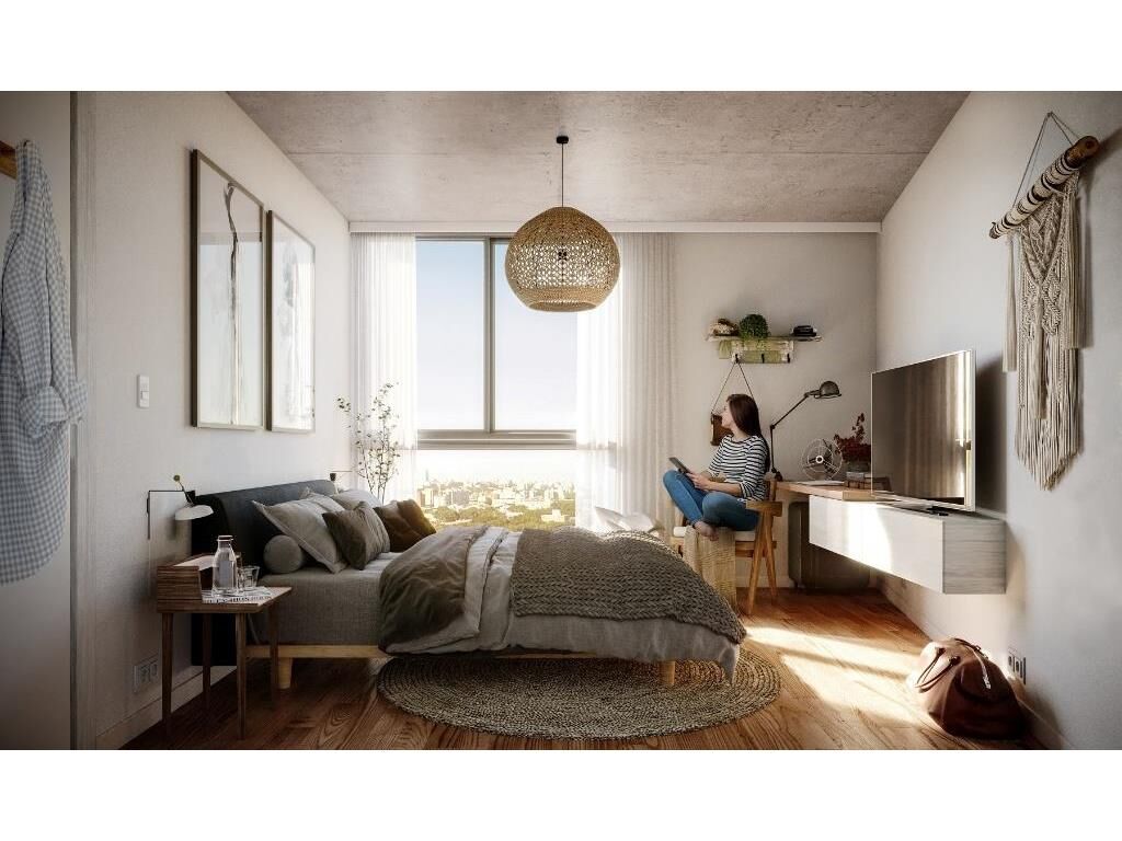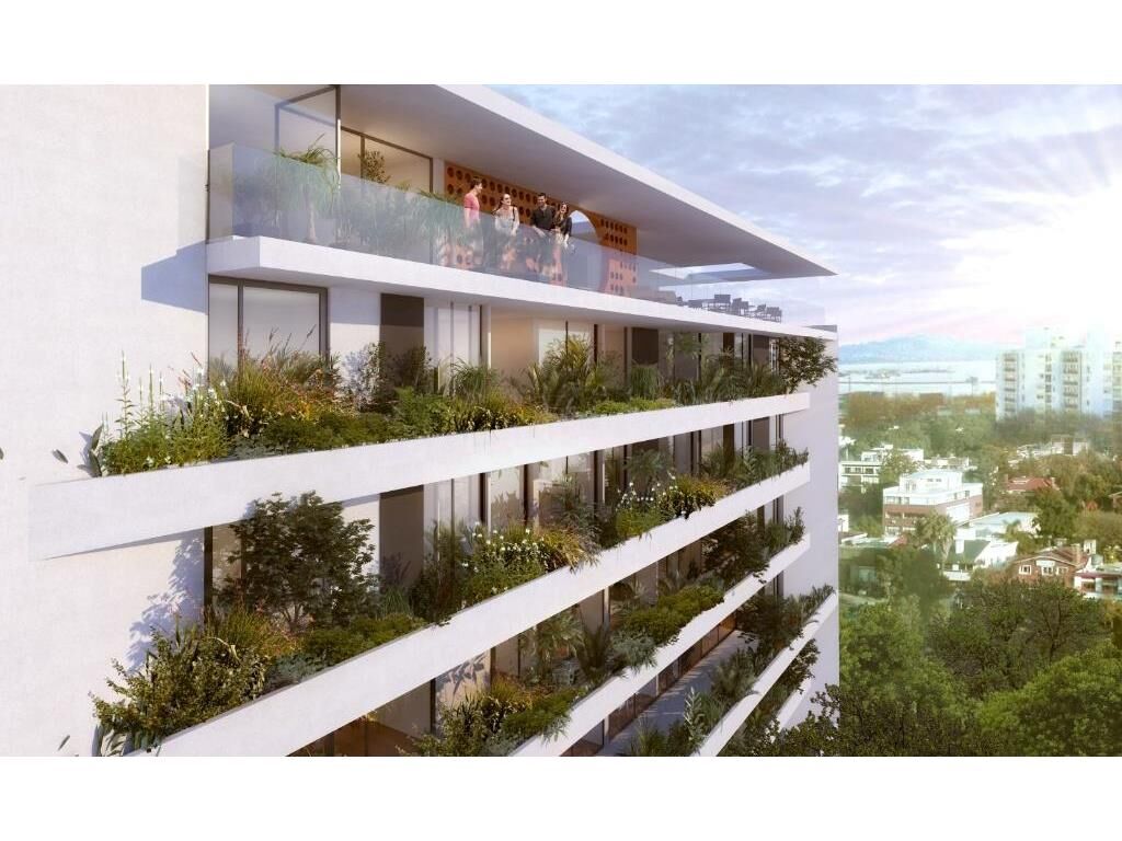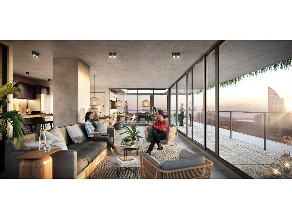 El edificio contará además con: hall y espacio de cowork vinculado con patio central, rooftop con vistas a la Bahía y al Cerro de Montevideo, mirador, parrilleros, SUM, solarium y bike parking.