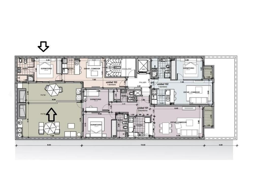 Muy buena oportunidad en proyecto a estrenar a fines de 2023. Unidades de 1 dormitorio (59m2) con cocina integrada, baño y amplio living comedor con acceso a patio a USD 172000