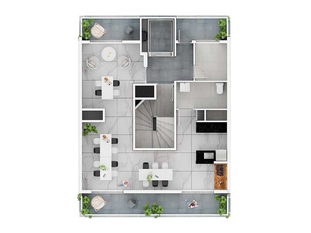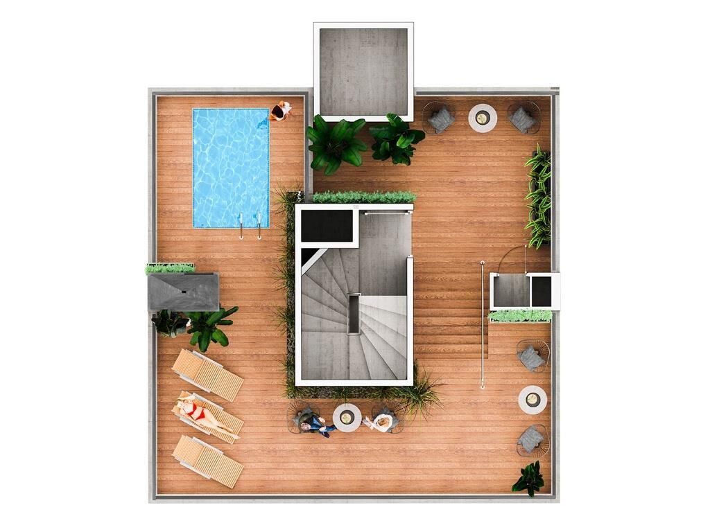 A su vez, cuenta con: subsuelo con cocheras, planta baja, 10 pisos de apartamentos y una planta de amenidades íntegramente equipada. • Ambos edificios cuentan en forma privada con: Salón multiuso con barbacoa, cocina, sanitarios y vista panorámica en último piso. • Gimnasio. • Piscina y solarium.