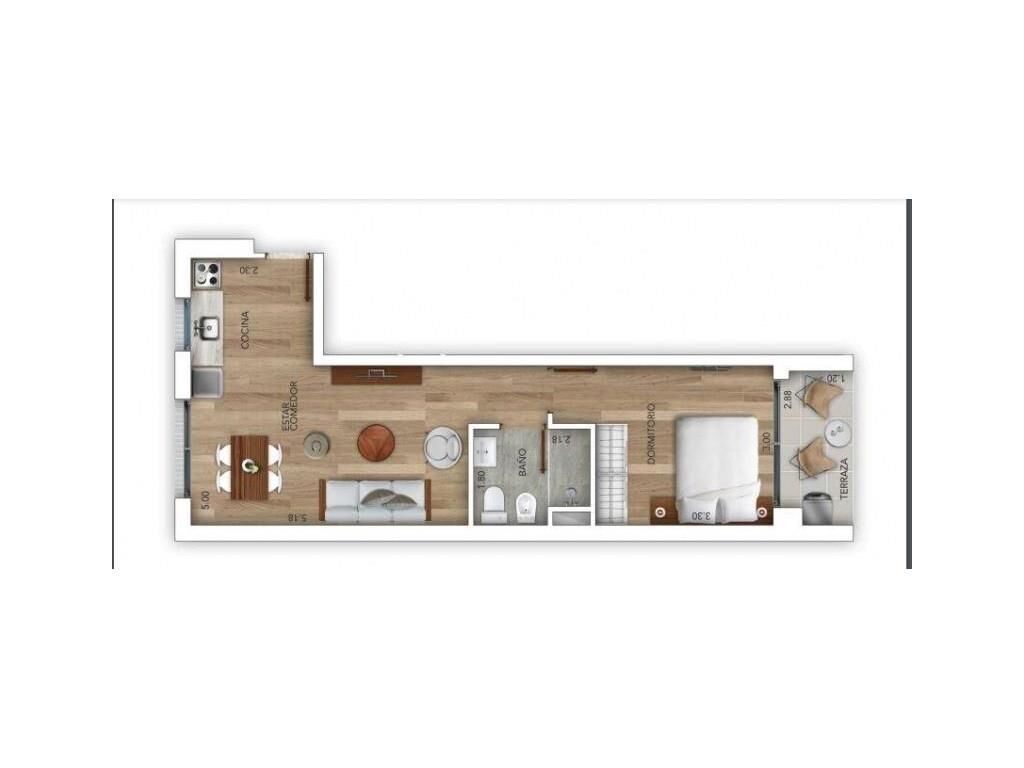 Unidad de 51m2 distribuidos en un dormitorio, amplio living-comedor con excelente iluminacion natural, cocina integrada, baño completo.