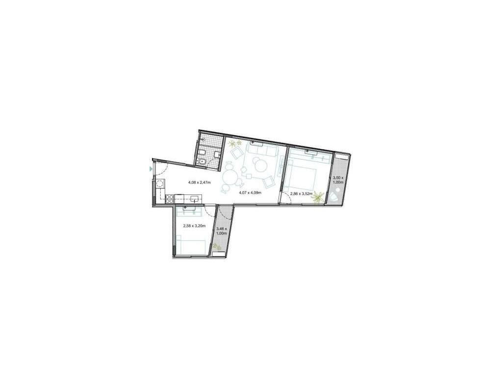 Apartamento de 2 dormitorios a contrafrente. Amplio living-comedor con cocina integrada y baño. Dos dormitorios con terrazas individuales. 61m2 en total