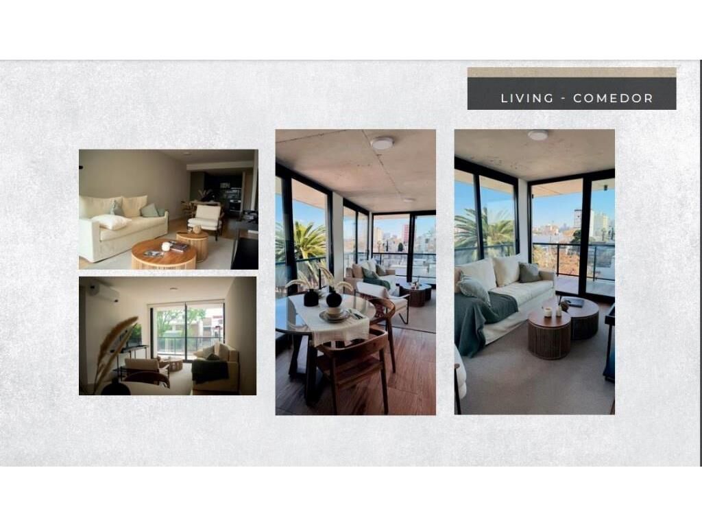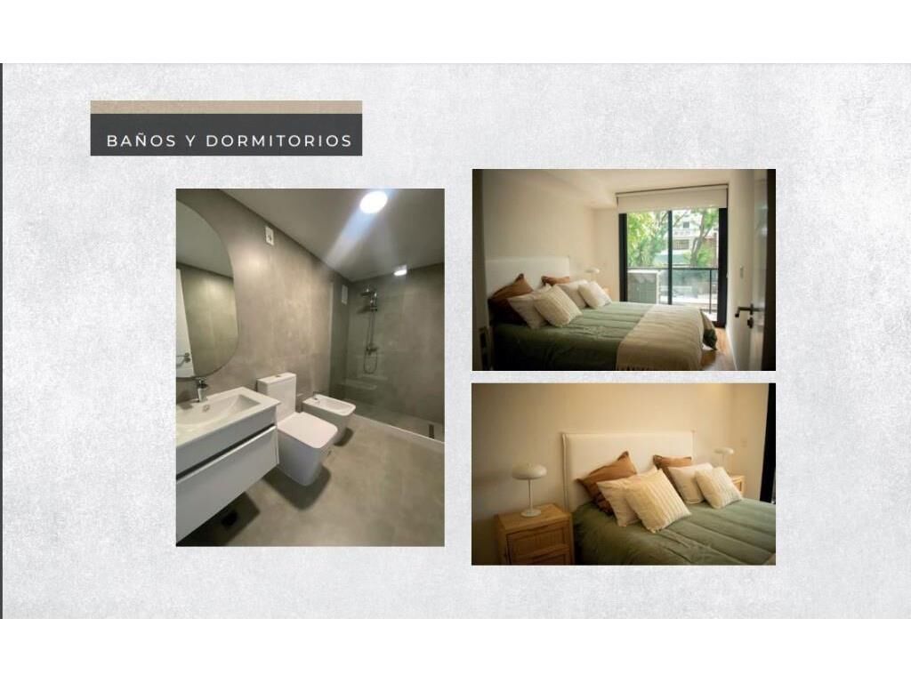 Apartamento de 78m2 distribuidos en dos dormitorios, amplio living-comedor con cocina integrada y dos baños. Al frente, terraza accesible desde todos los ambientes