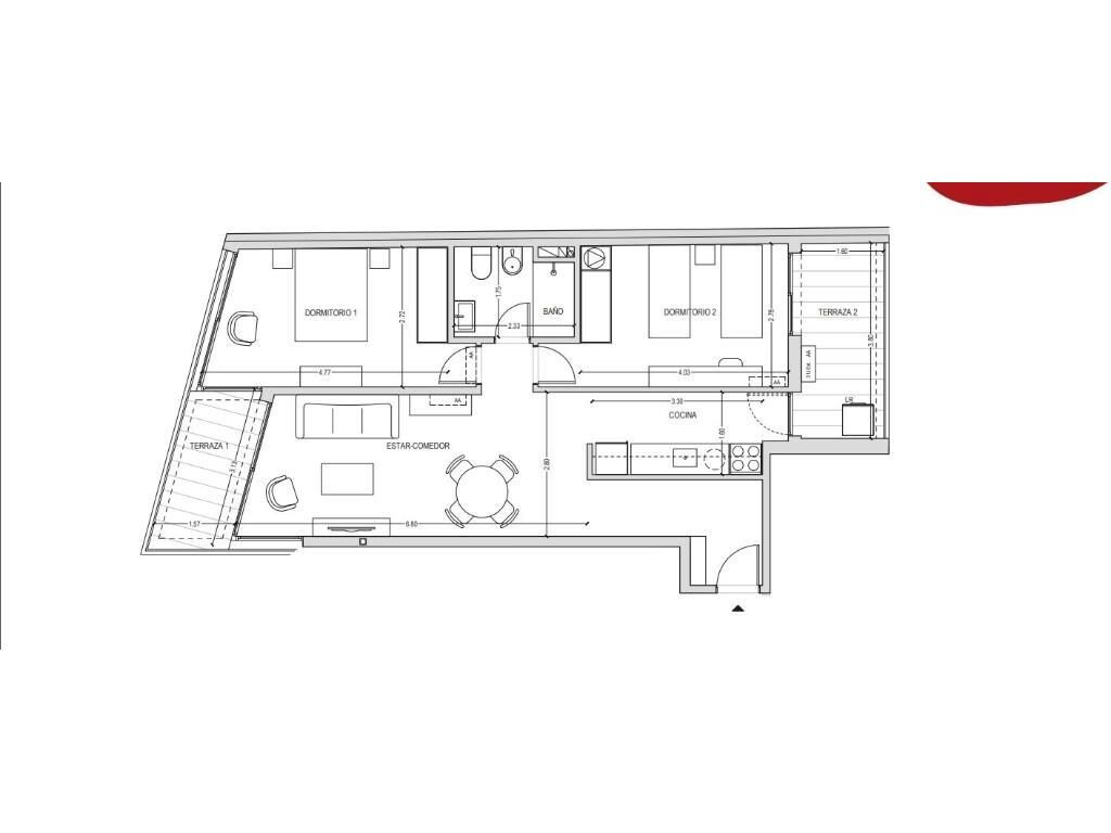 Apartamentos de dos dormitorios con living-comedor con cocina integrada, baño completo y terraza