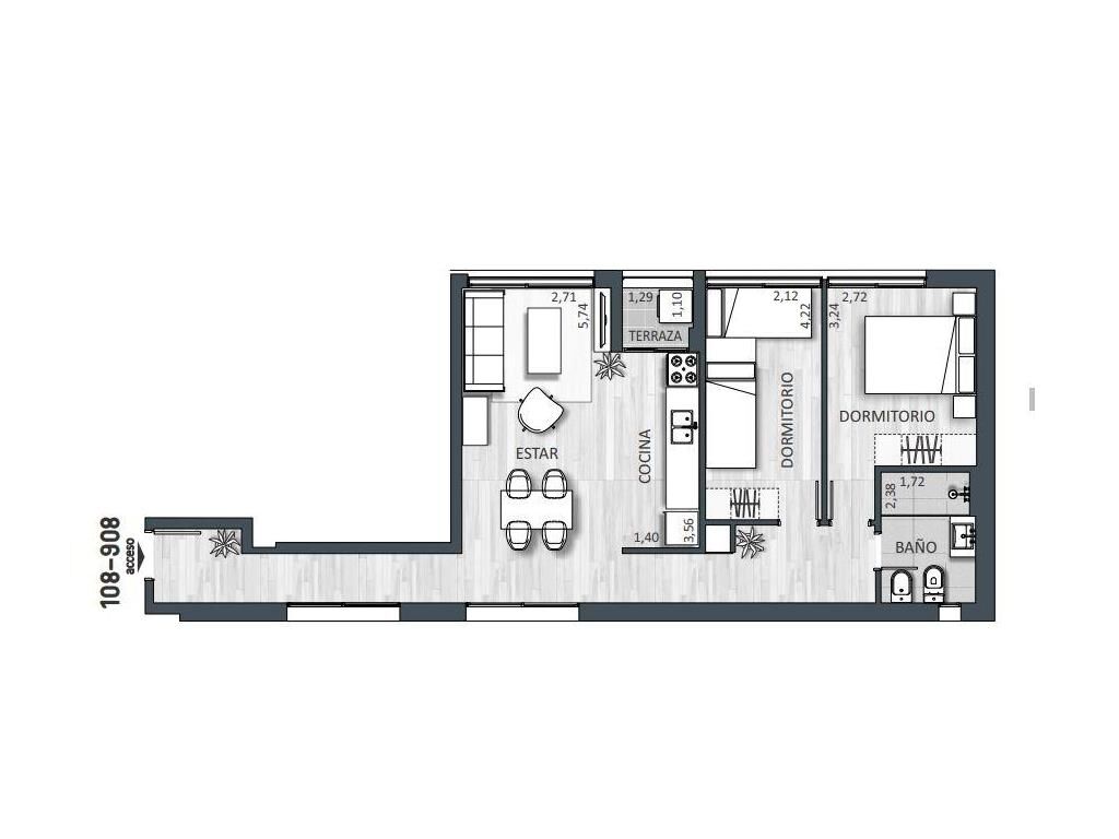 Unidad de 75 m2 distribuidos en dos dormitorios, cómodo living-comedor con cocina integrada y baño completo.