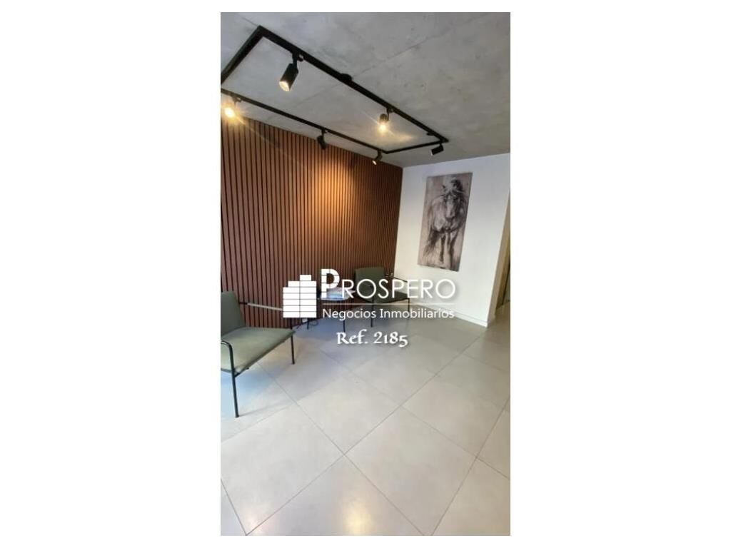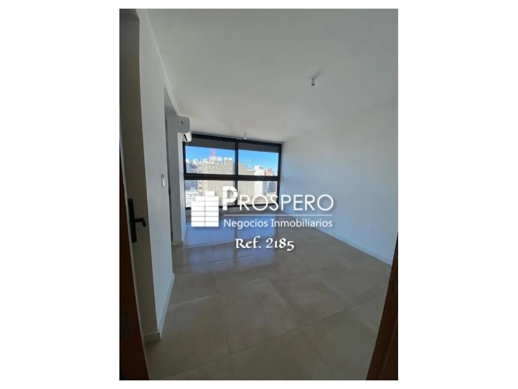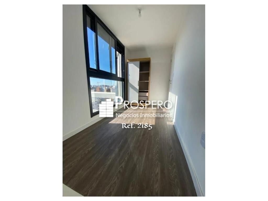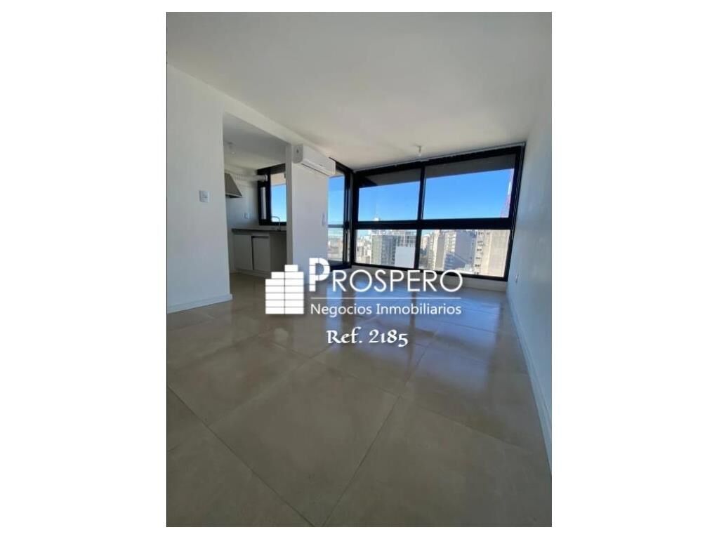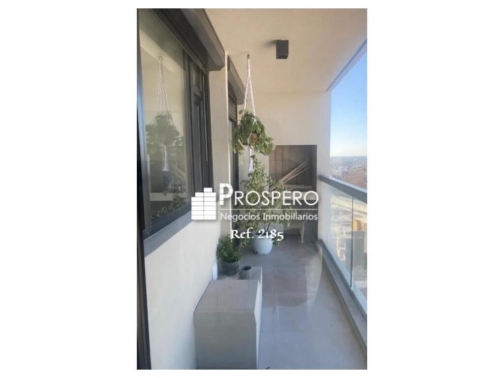 Living comedor con gran ventanal al frente y salida a balcón con parrillero,
