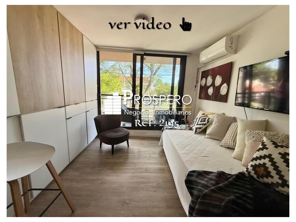 Monoambiente con salida a un hermoso balcón. Cocina integrada con barra desayunadora, espacio definido para heladera.