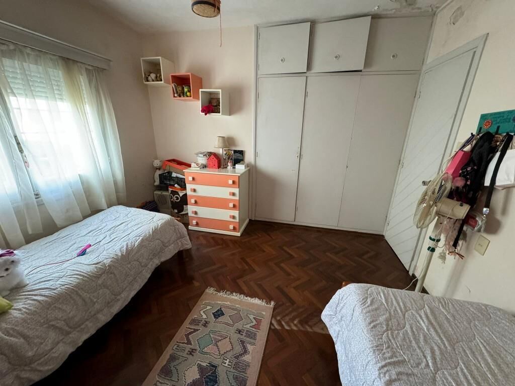 -              4 dormitorios en planta alta con placares profundos, iluminados, muy buen metraje, pisos de parquet, ventilación cruzada, vista despejada.