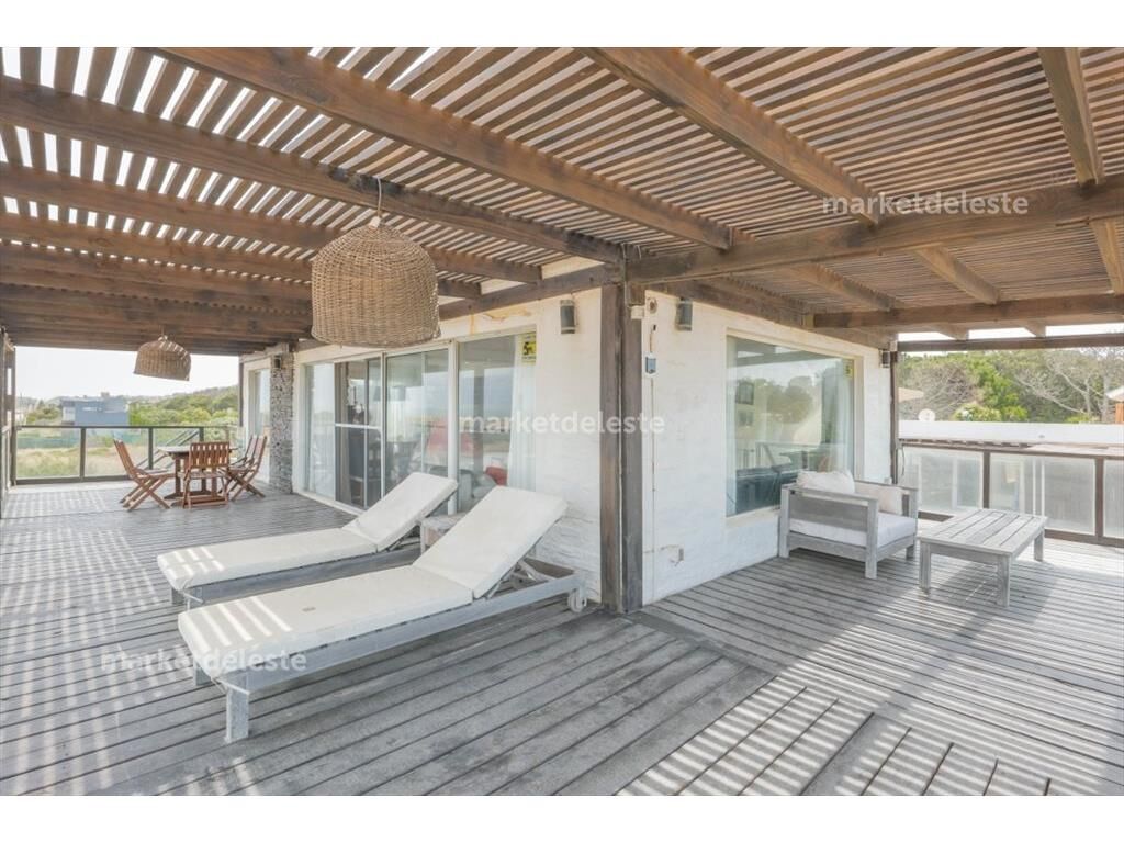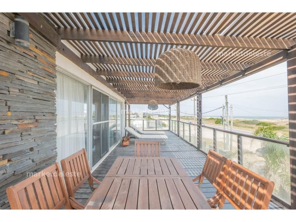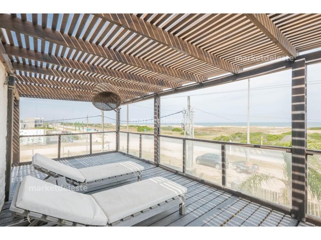 Magnífica casa sobre Ruta 10 frente a la playa. Cuenta con 3 dormitorios en planta baja y en planta alta se encuentran el living - comedor y cocina con una gran vista panorámica. Amplia terraza techada al frente para disfrutar todo el año y un parrillero exterior de fácil acceso desde la cocina. En el exterior cuenta con una cancha de fútbol de césped natural, un sauna para 4 personas, bañera nórdica y una casa de huéspedes al fondo totalmente equipada con dos dormitorios en suite y cocina integrada.