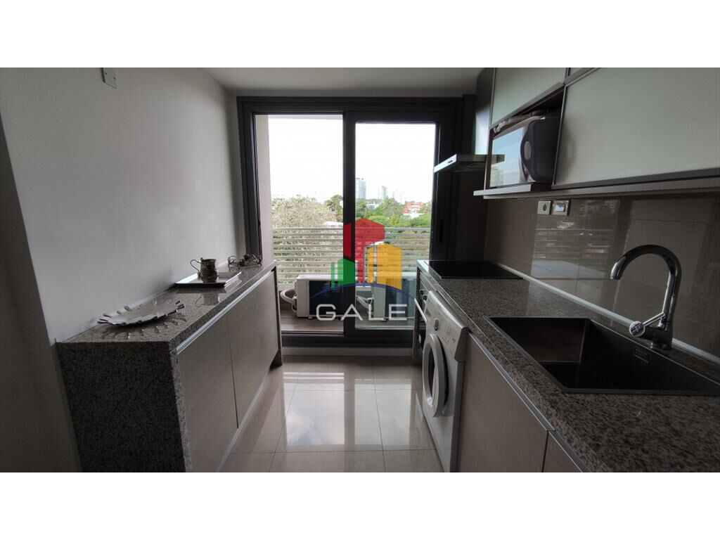 Piso medio, dos suites, toilette, cocina definida y balcón lavadero.
