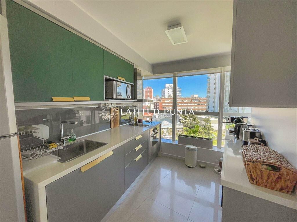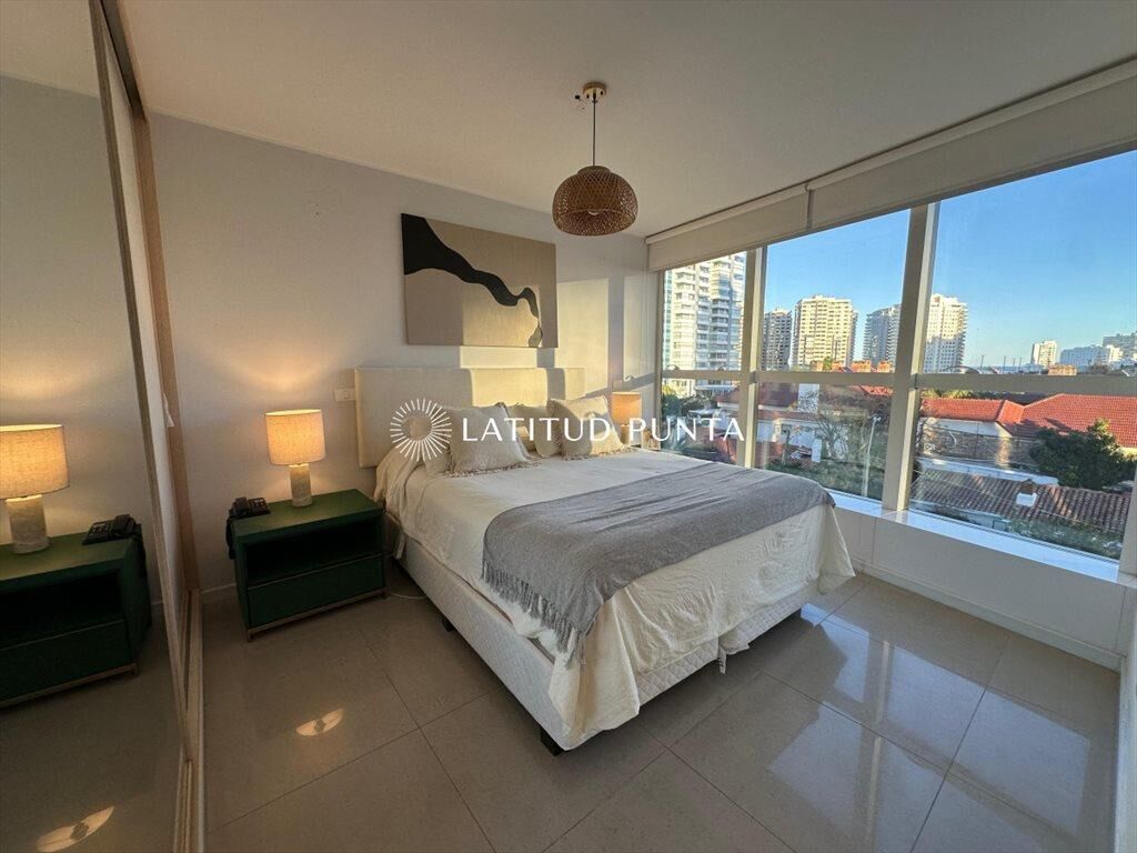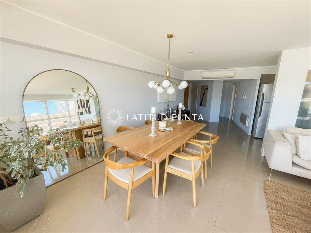 Amplio apartamento en excelente ubicación a pasos de playa mansa y Enjoy en exclusivo edificio con muy buenos amenities. Gran living-comedor con cocina semi integrada, cómoda terraza, dos suites, garaje en subsuelo, lavadero dentro del apartamento con lavadora y secadora. Servicio de mucama y de playa, recepción 24 hrs. Servicio de playa al lado de Ovo Beach.