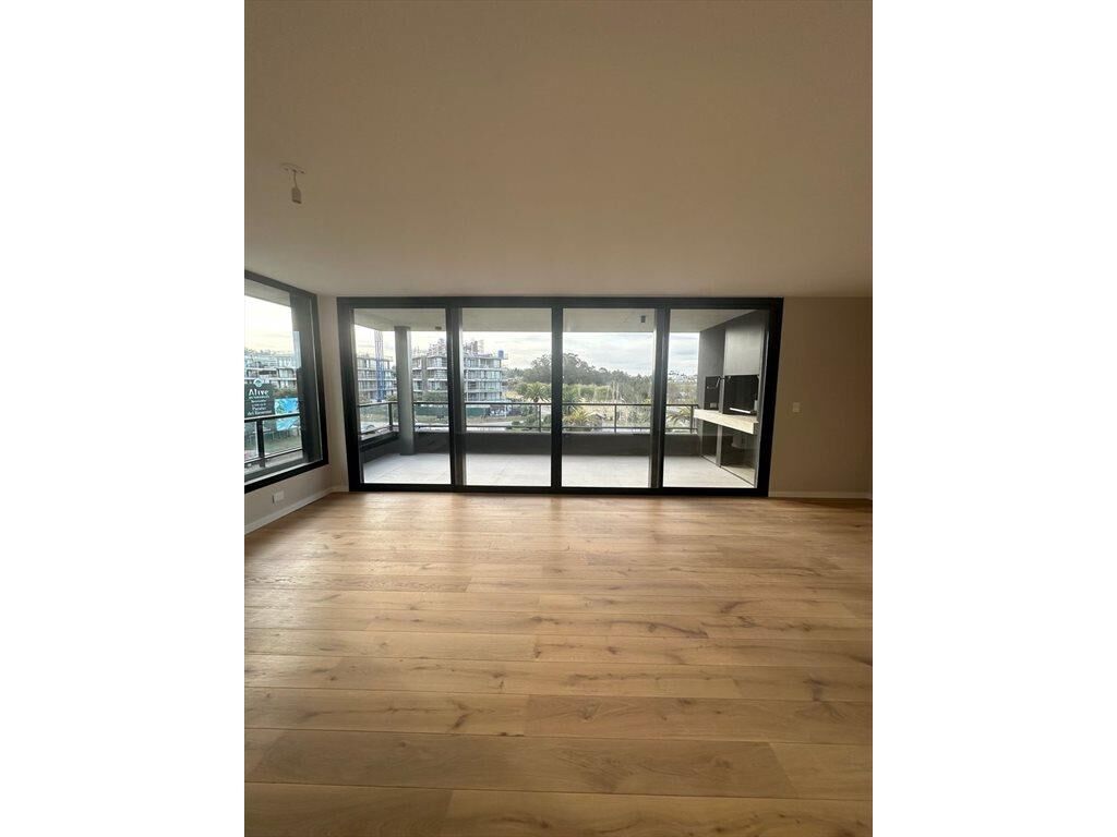 Alquila apartamento a estrenar en Barrio Parques 2 de Carrasco. CON O SIN MUEBLES La unidad se encuentra al frente en el segundo piso con vista totalemente despejada Se ingresa a un living comedor con estufa de alto rendimiento y salida a una gran terraza con parrillero Despojador Cocina con doble mesada, campana , horno y anafe Lavadero Toilette. Master suite con vestidor Segundo y tercer dormitorio. Baño completo. Garaje Calefacción y agua caliente con caldereta a gas Aire acondicionado Amenities Piscina Gimnasio