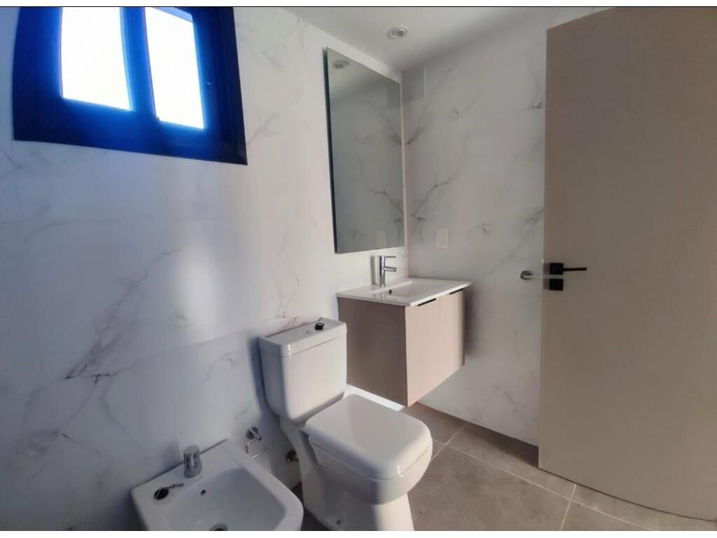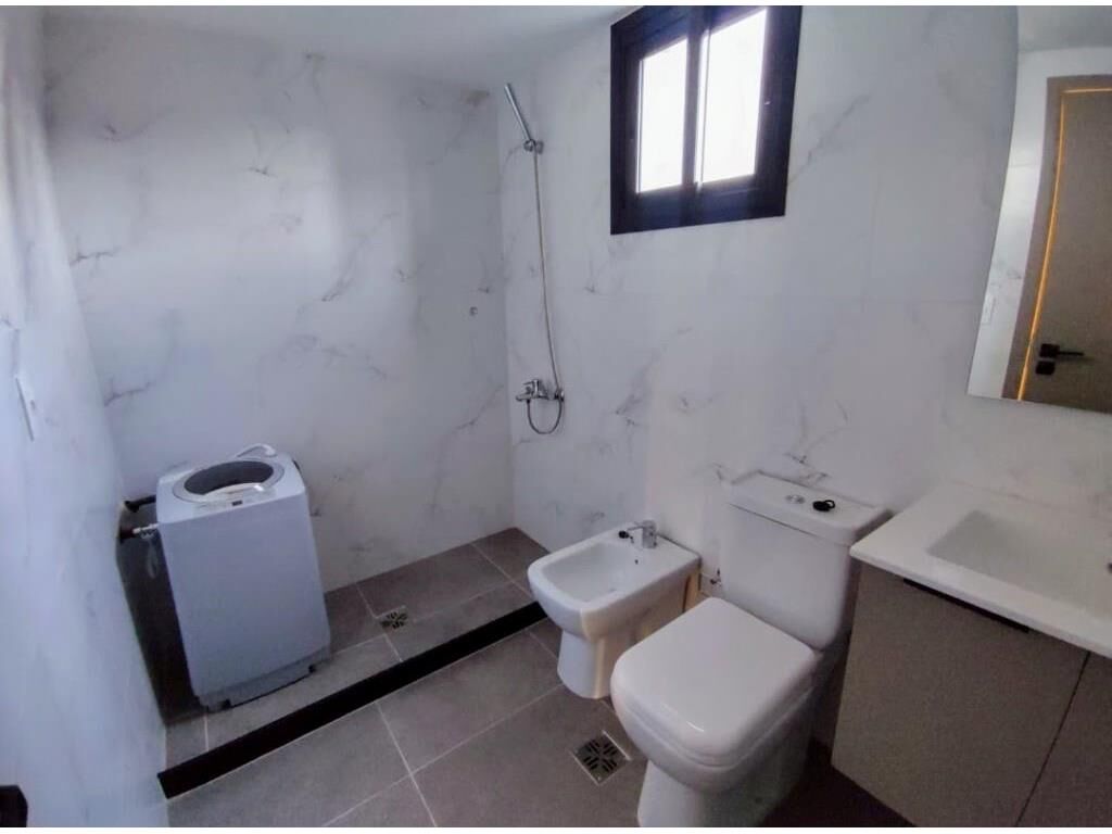 El baño de muy buen tamaño todo hecho a nuevo con mampara de vidrio y piezas de alta calidad; también viene con lavarropas chico para cosas pequeñas o lavado diario; en el edificio hay laundry como amenities para uso de sus residentes, así como también barbacoa equipada para tus reuniones y eventos.