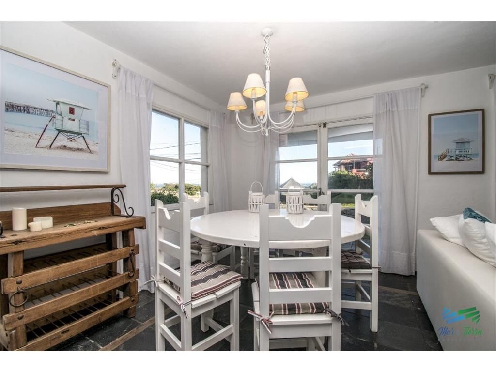 Distribuida en dos cómodas plantas. Ubicándose en la primera: living comedor amplio y luminoso al frente con salida al porche de entrada y vista al mar, toilette de visitas, cocina definida con acceso al jardín y dormitorio de servicio con baño. En planta alta se encuentran tres cómodos dormitorios, dos baños completos, el principal en suite con salida al balcón y vista a la playa.