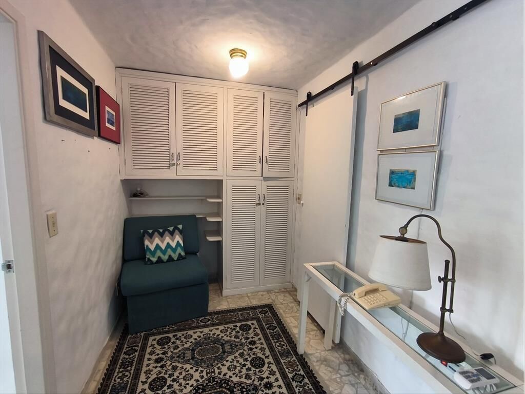 El dormitorio principal cuenta con una cama matrimonial y un placard. Adicionalmente, el apartamento tiene un espacio extra con un sofá cama y un mueble para almacenamiento, que puede ser utilizado como estudio o rincón de lectura.