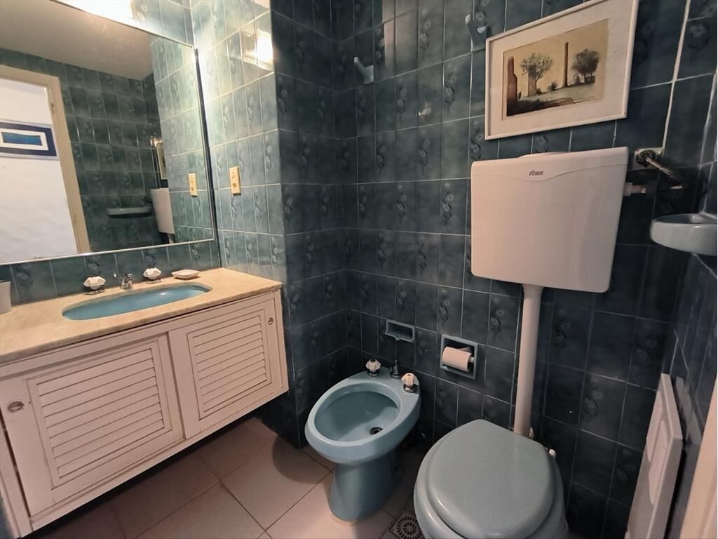El baño es completo, con bañera/ducha y bidet. El piso de baldosas y la decoración en tonos neutros y azules le dan una sensación fresca y agradable.