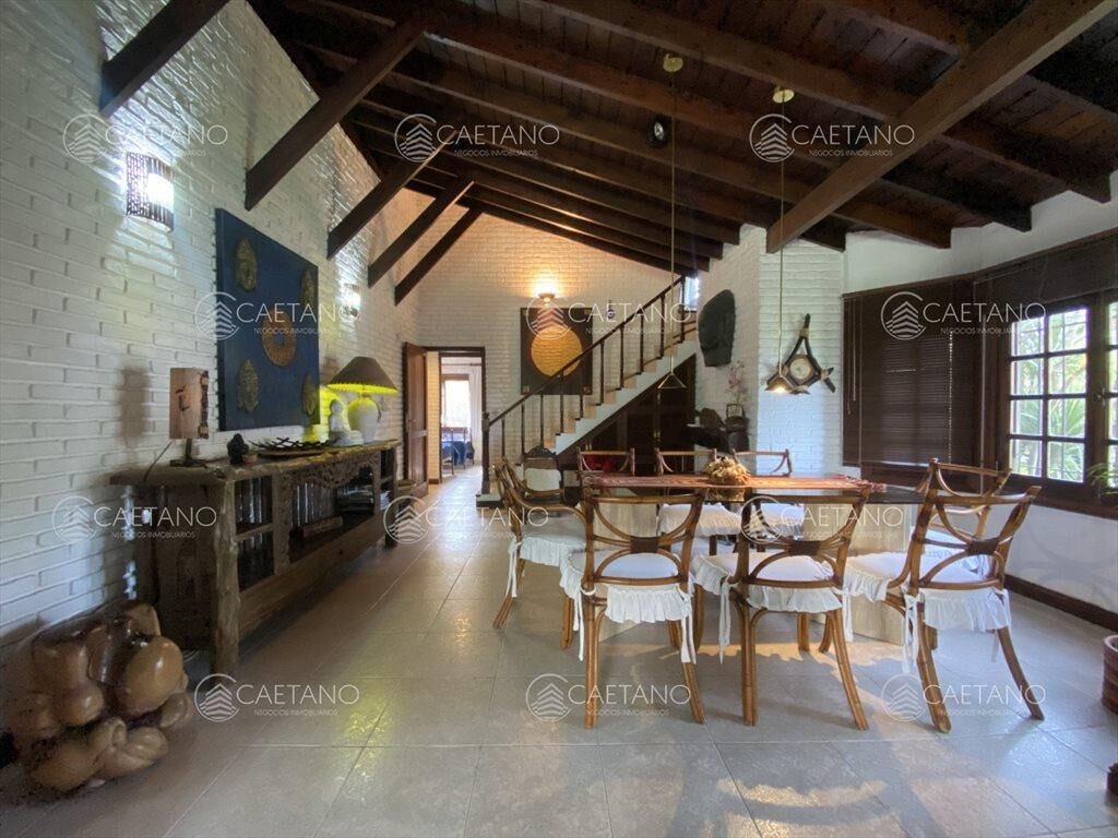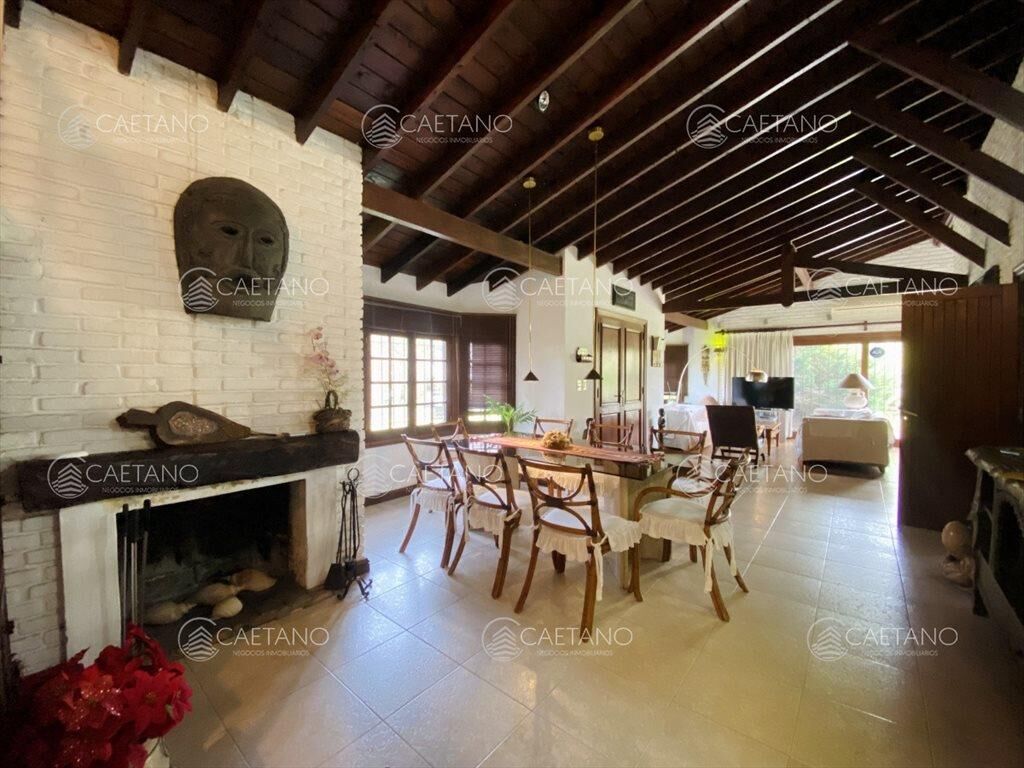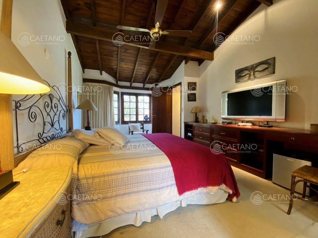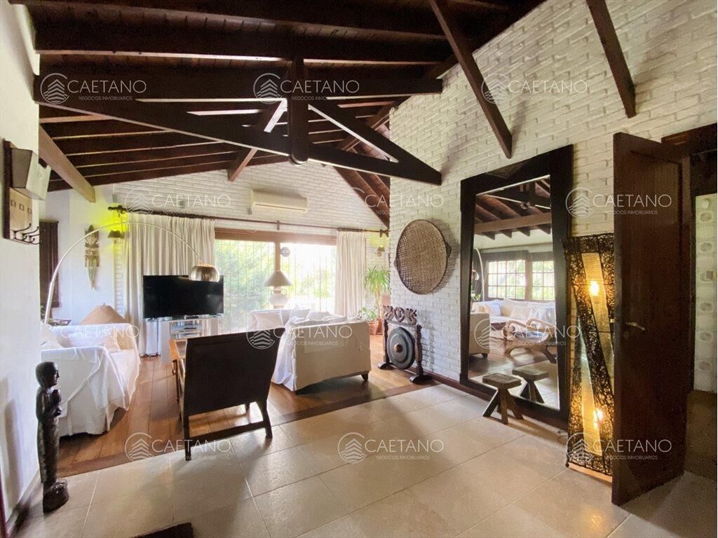 La vivienda cuenta con 4 dormitorios, 2 de ellos en suite, 5 baños. El dormitorio principal cuenta con vestidor y salida una terraza sin techar con vista al jardín. Además con un amplio living comedor con techo de dos aguas y estufa a leña.