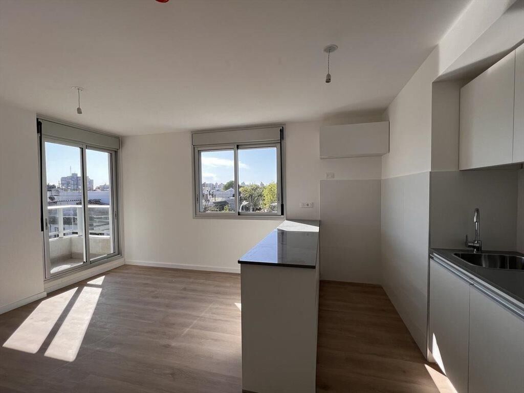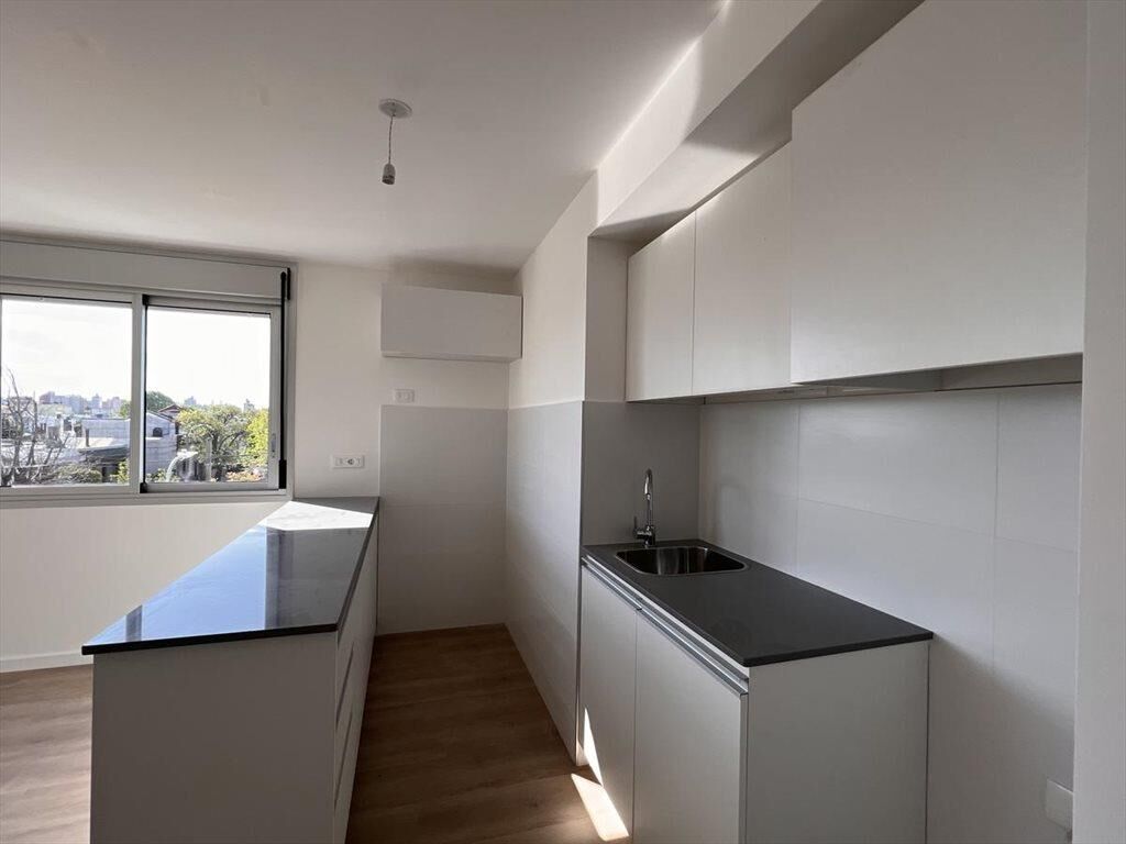 Cocina integrada con placares sobre y bajo mesada.