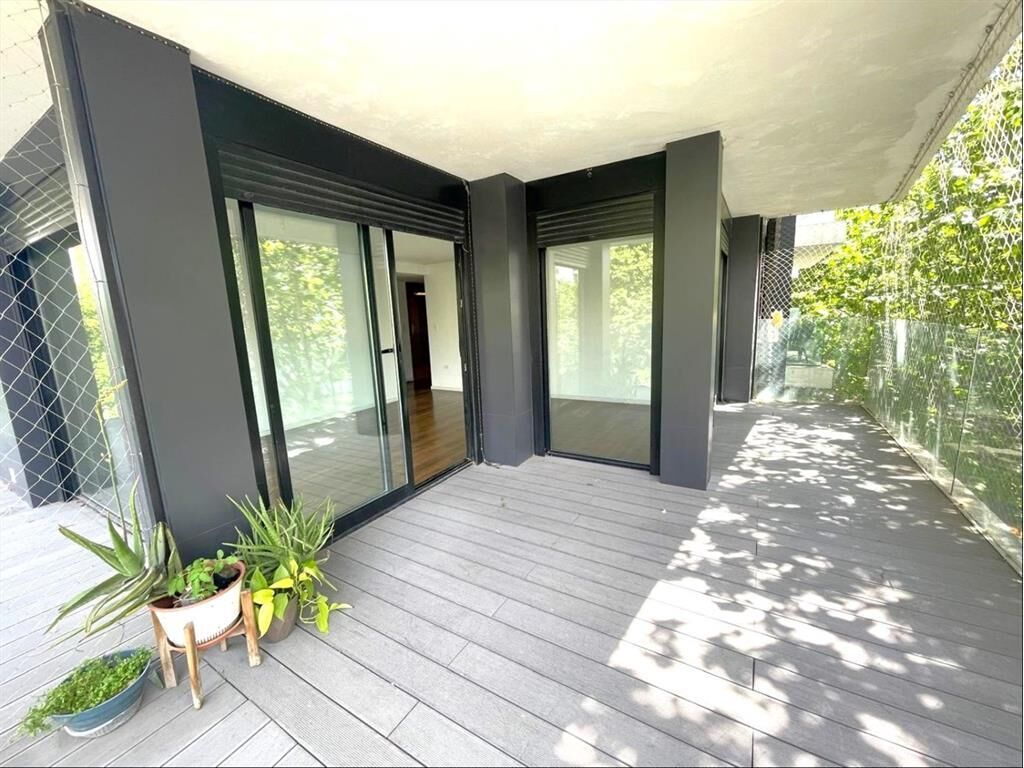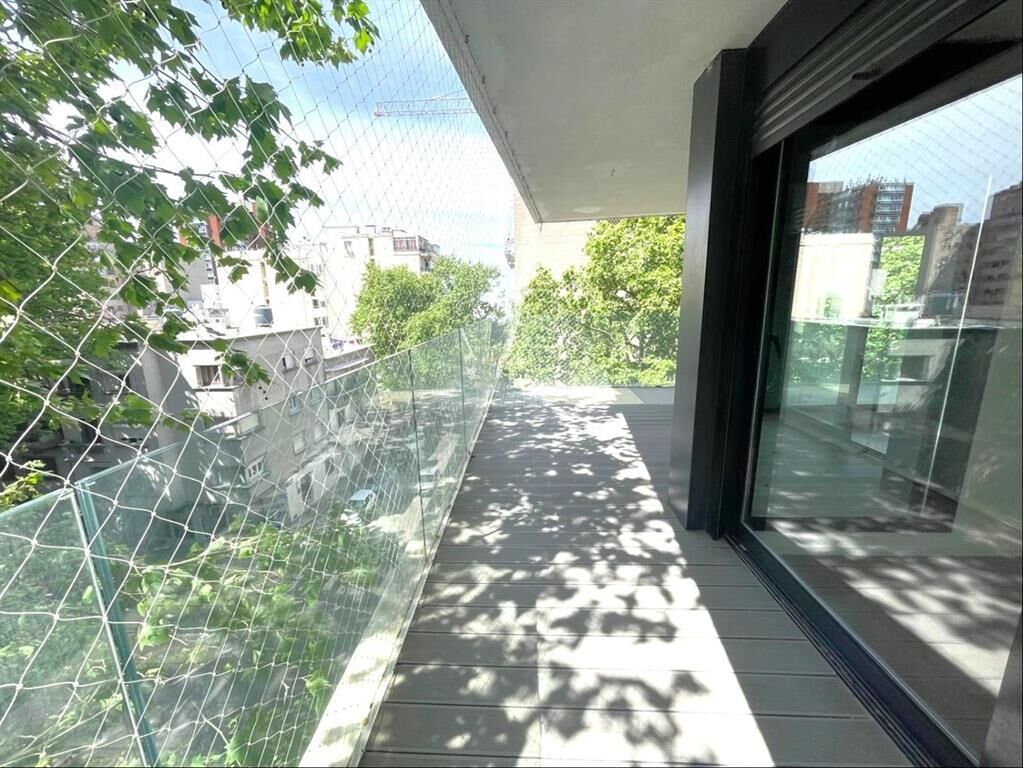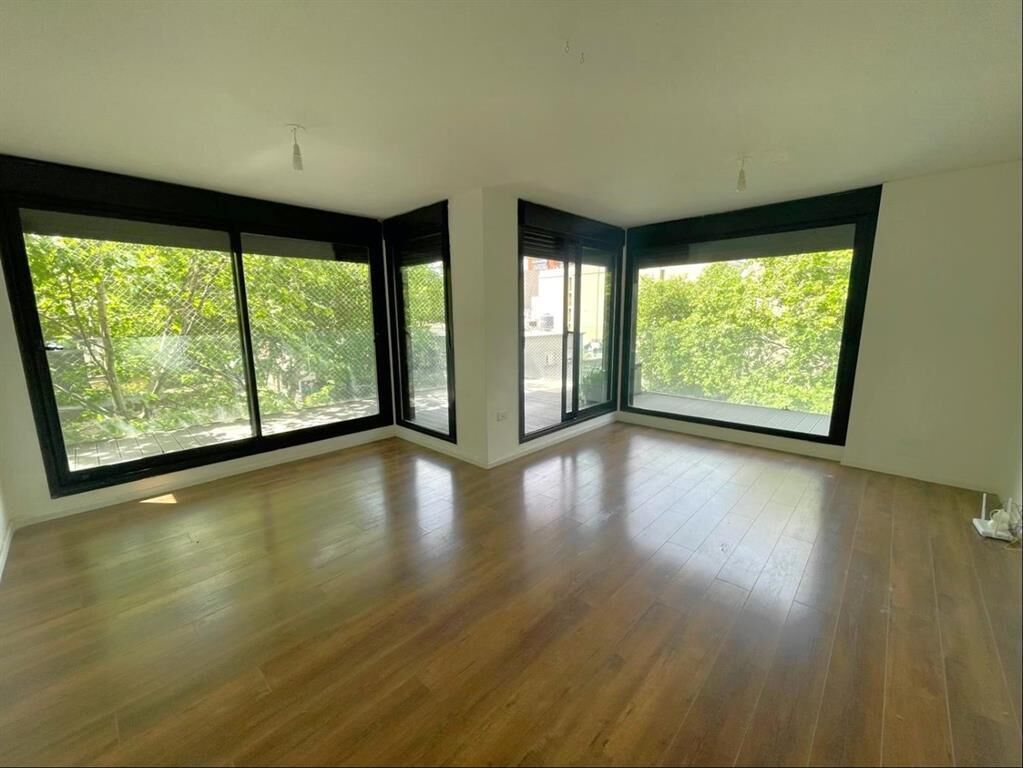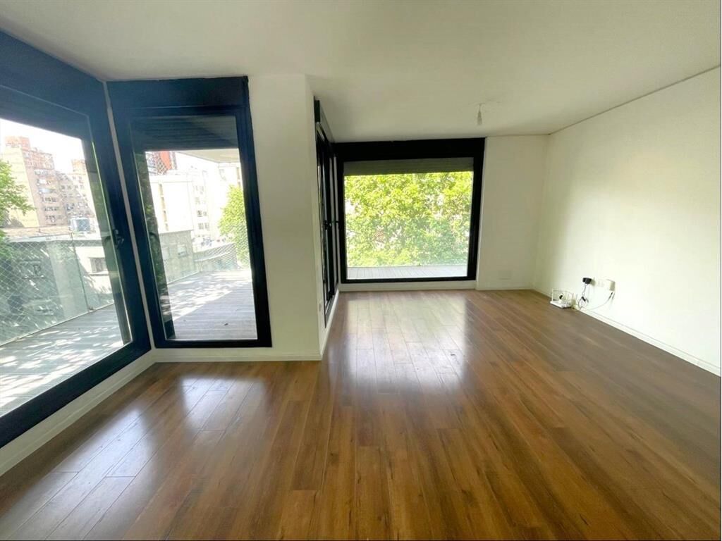 Amplio living comedor con enormes ventanales y salida a una terraza super amplia cómoda y soleada que rodea todo el apartamento . Los ventanales son con vidrios DVH lo que garantiza la aislacion tanto del frio , calor y sonidos .