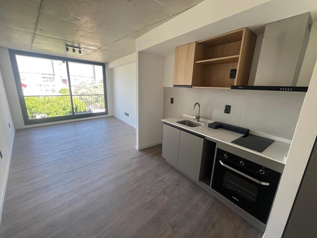 Estrena apartamento sobre Monte Caseros frente al Parque Central. Estar al frente con salida a terraza, moderna cocina integrada equipada con horno, anafe y campana. 2 dormitorios al contrafrente, ambos con placares. Calefón y aire acondicionado en dormitorio principal y en living incluido. Incluye box de uso exclusivo en el mismo piso.  Sum con parrillero en el ultimo piso. Gastos comunes aprox $ 6000 Garaje opcional.