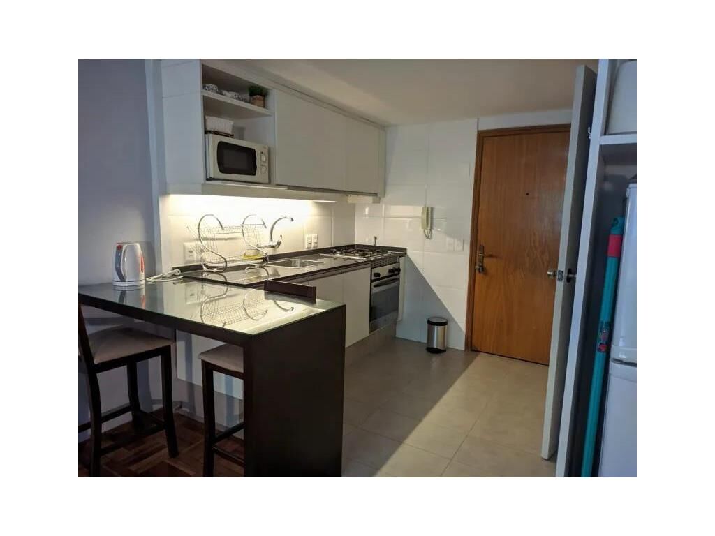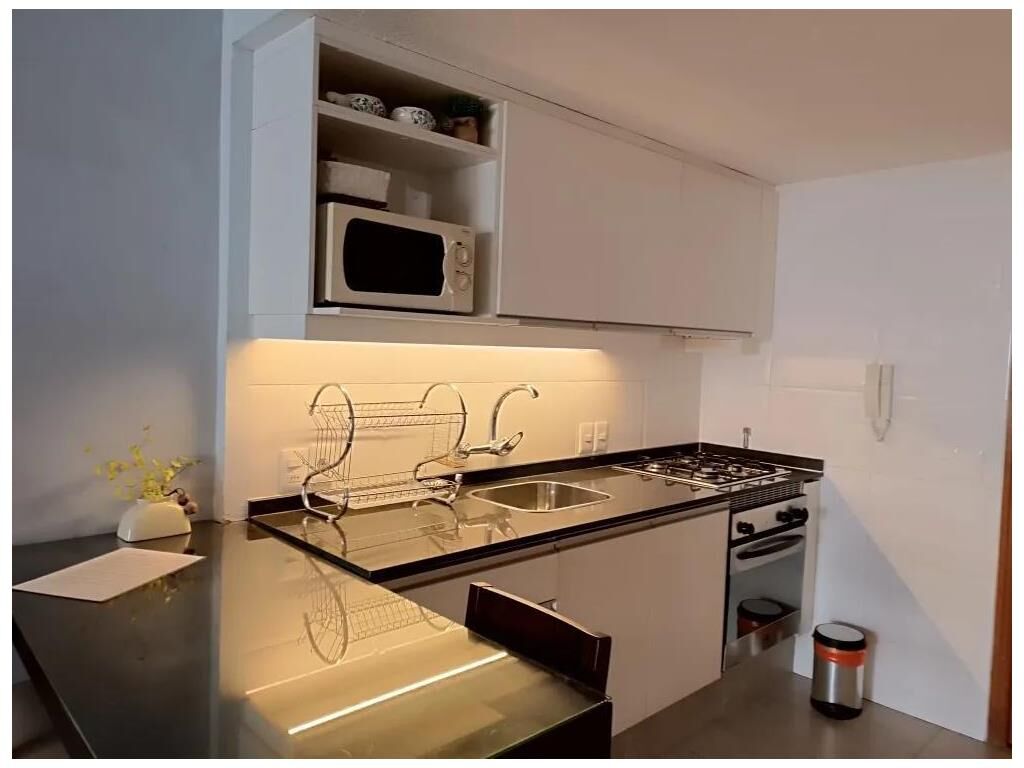 El apartamento está completamente equipado y listo para habitar. Cuenta con cama matrimonial, sofá cama, escritorio, mueble de TV, mesa con sillas y estantería. La cocina y el baño han sido reciclados recientemente, e incluye electrodomésticos como heladera con freezer, horno, anafe, microondas y TV con acceso a streaming. Dispone además de losa radiante, aire acondicionado frío/calor y detector de gas y monóxido de carbono. El baño es moderno, con grifería actualizada, mampara de vidrio y espejo con luz integrada.