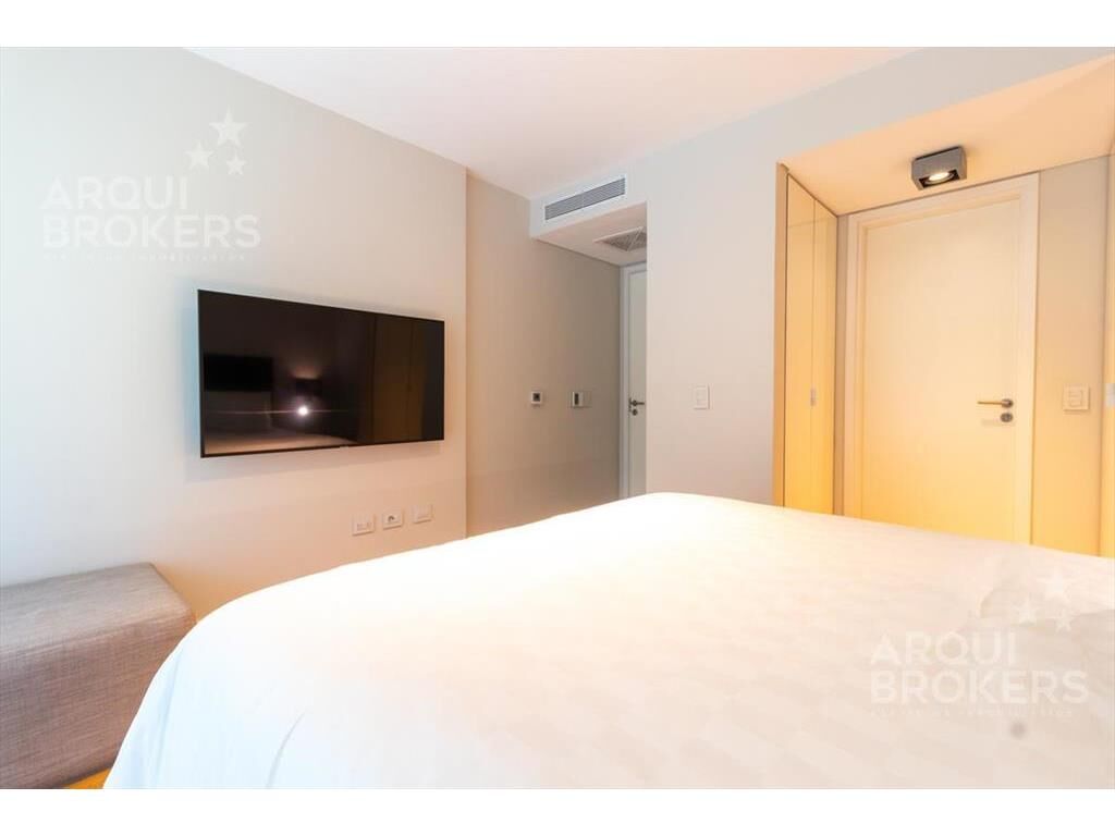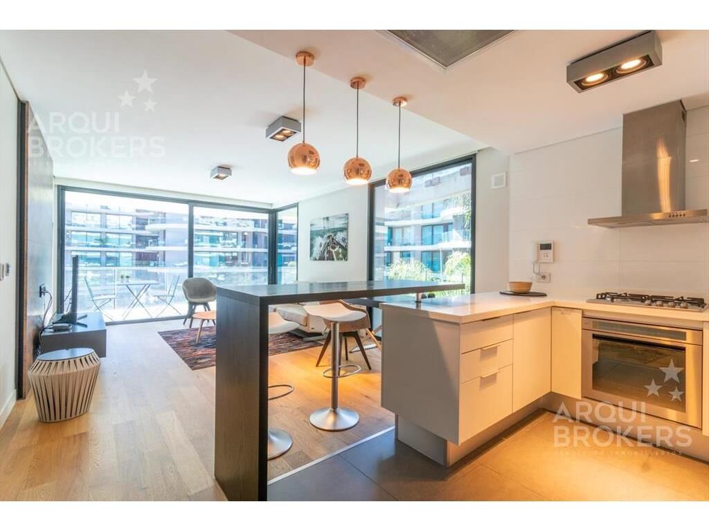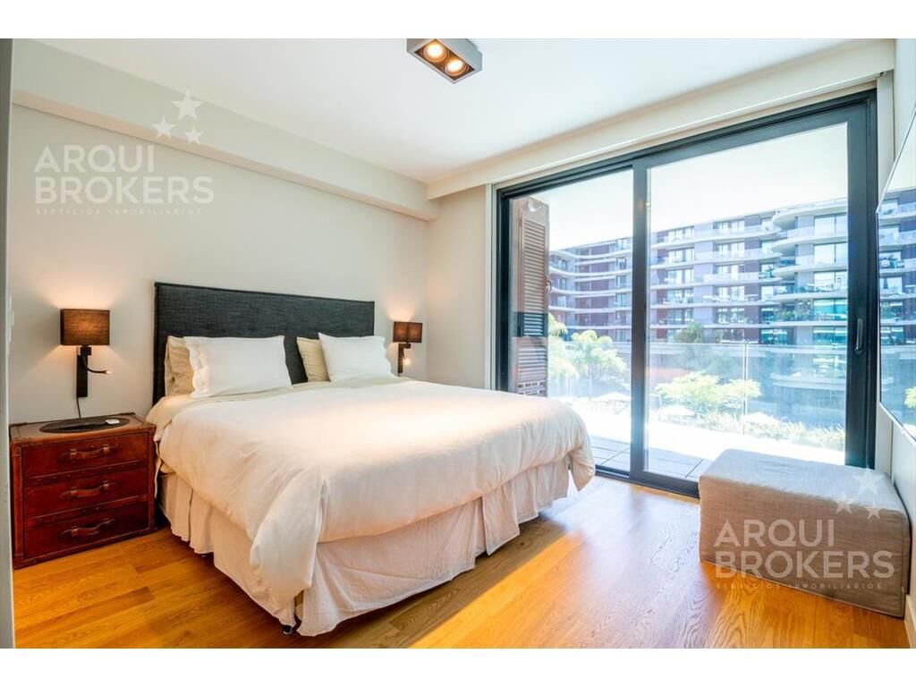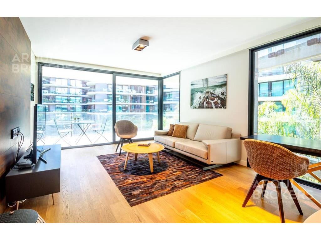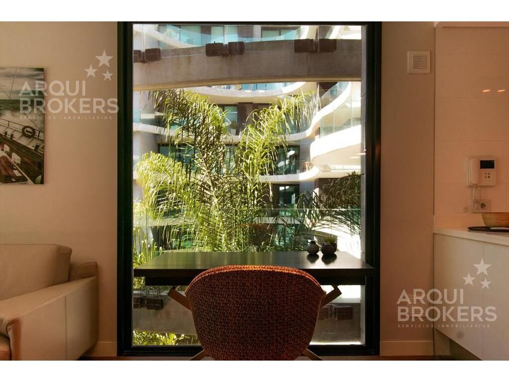 El proyecto cuenta con un conjunto de amenities cubiertos y descubiertos con una propuesta única en la ciudad y un jardín central privado de 3.500 m2. Piso 2 de vista al núcleo central muy agradable,  por la noche el espejo de agua iluminado es visualmente muy atractivo. Es una unidad muy luminosa porque no sólo tiene ventanas en su frente sino también su lateral ya que está en una península convexa.  Tipología es de 1 Dormitorio Con baño en Suite y  baño social , cocina integrada calidad Premium. Amplia terraza lo cual lo hace un lugar ideal para desayunar.  Living comedor de prácticamente 6 x 4mts lo cual es muy impactante.  Aire Acondicionado  central con control en 2 sectores  Todo el mobiliario es de BoConcept, con un sillón de cuero Italiano, luces LED en toda la unidad de primera calidad. La unidad es premium dentro de un proyecto premium.  Amenities: Piscina In – Out, piscina exterior para niños, piscina de nado contra corriente, gimnasio, vestuarios, spa (sauna y sala de masajes), salón de usos múltiples, espacios Gourmet, business center, salón para niños / adolescentes, jardines parquizados, vigilancia 24 hs, grupo electrógeno para áreas comunes y todas las unidades pertenecientes al mismo, bicicleteros, WiFi en áreas comunes. Es la tipología más cómoda en 1 dormitorio por lo cual permite un alquiler corporativo o embajada. Garaje  Amplio y baulera  U$S 200 .- Si desea Top de comfort  : sábanas, toallas,ollas holandesas, cubiertos alemanes, vajilla todo lo necesario para el dia a dia U$S 120 mensual.- Precio por alquiler anual , CONSULTE POR OTRAS OPCIONES.- U K204.- Pr.AC .- Referencia ABU25431 AP4878661 Honorarios por intermediación: 3% + IVA para operaciones de compra. Un mes de alquiler + IVA para operaciones de alquiler. La información contenida en el presente documento ha sido proporcionada íntegramente por el/los propietarios del inmueble. Arquibrokers Servicios Inmobiliarios no se responsabiliza por las diferencias ni las modificaciones que puedan surgir a partir de este documento.
