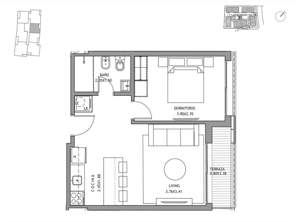 1 dormitorio, gran terraza con parrillero, Impecable estado