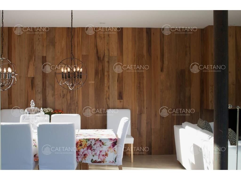 La gran pared de fondo revestida con madera de demolición pulida aporta gran calidez. La iluminación esta super cuidada.