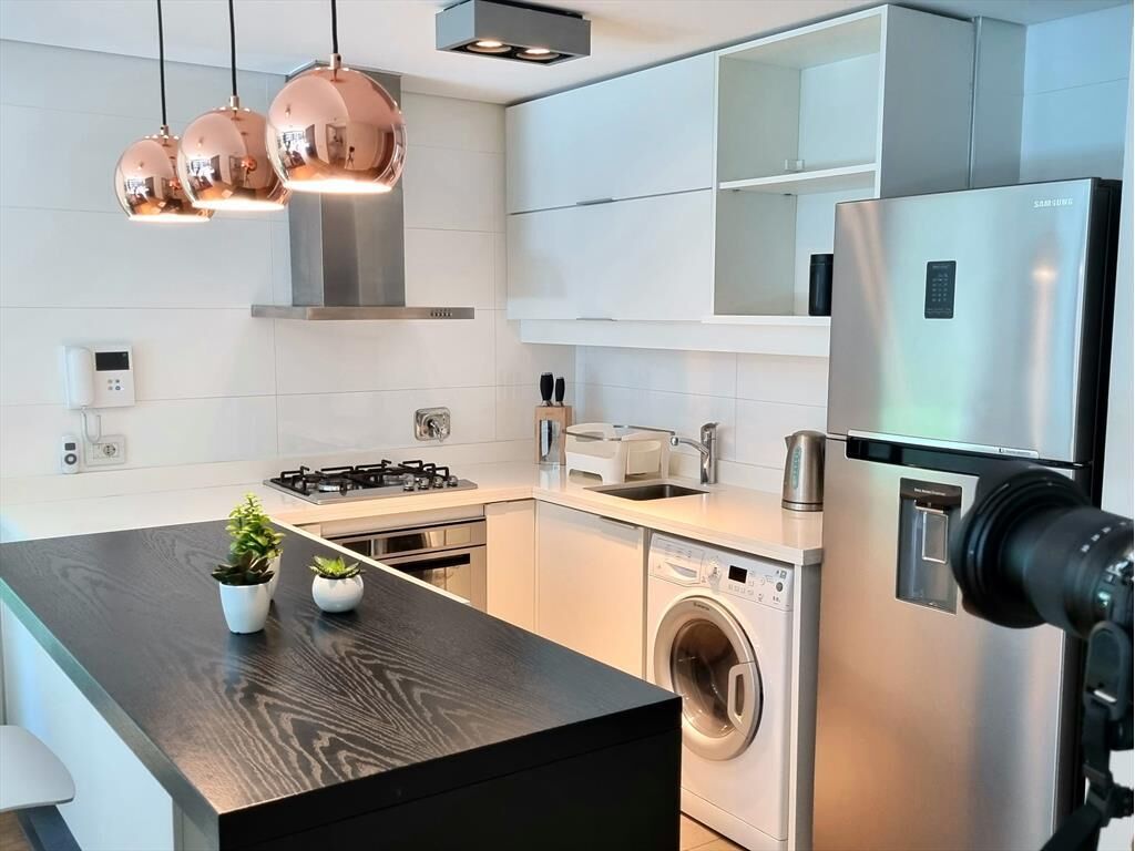 La cocina es realmente muy cómoda. Desde el upgrade de su horno, su heladera Samsung con máquina de hielo, lava-secarropas (atípico y muy conveniente), todo pero todo en esta unidad es de un nivel Premium.