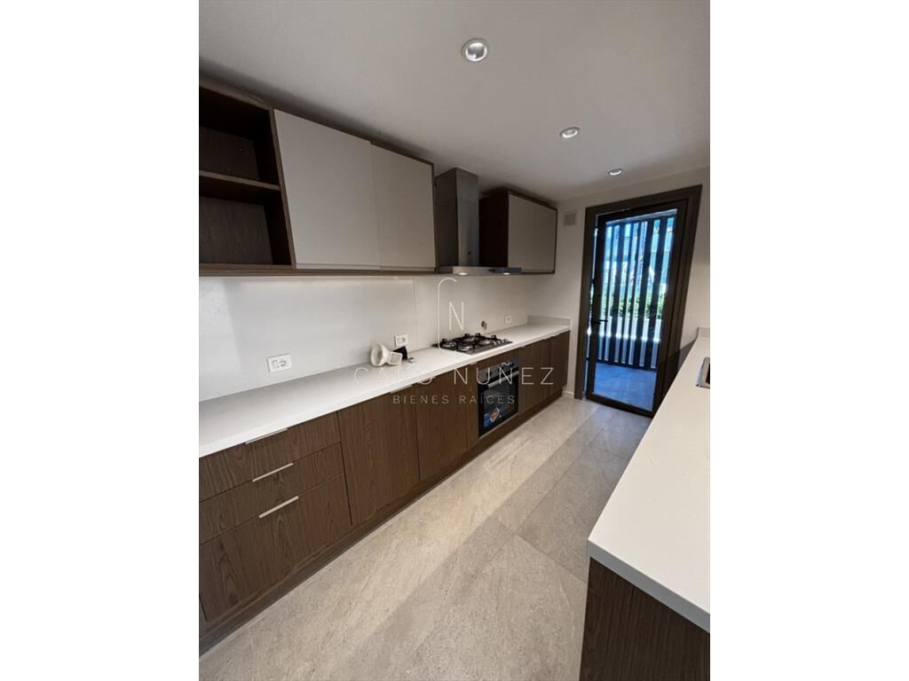 Cocina integrada, equipada con horno empotrado, anafe y heladera