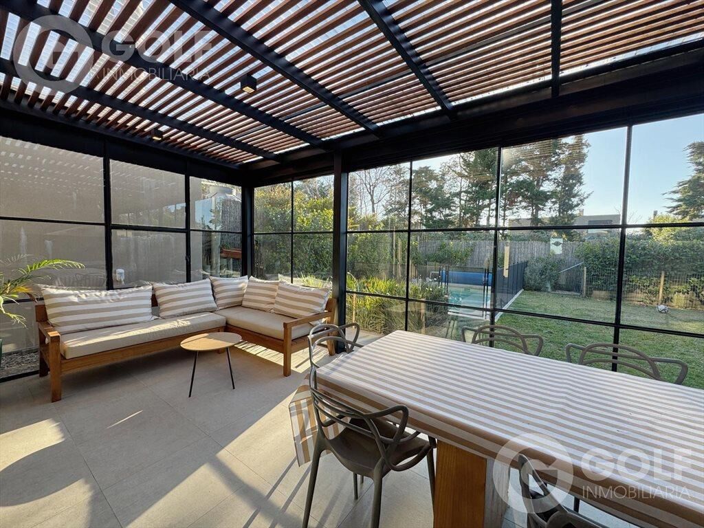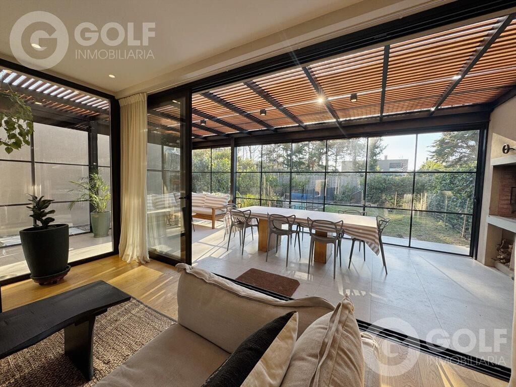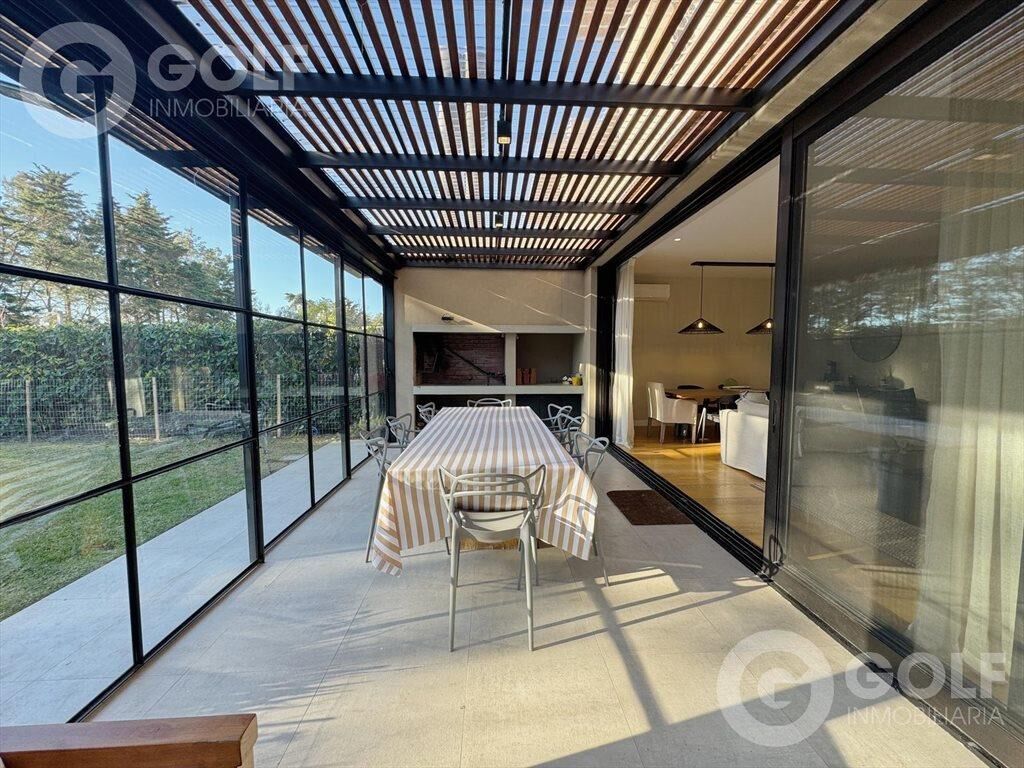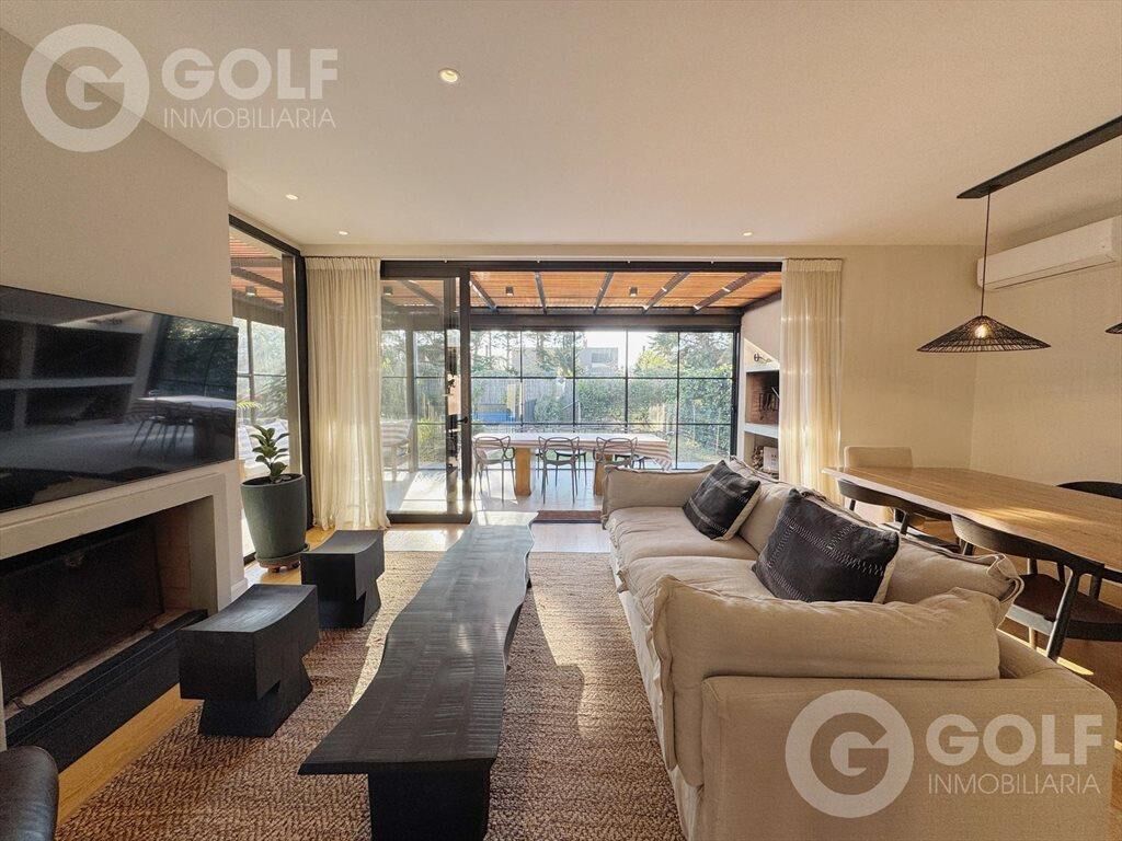 ALQUILER DE  CASA 3 DORMITORIOS + SERVICIO TOTALMENTE EQUIPADA EN SAN NICOLÁS Hermoso diseño y calidad  Planta Baja: Ingreso a patio interno Cocina con gran barra Dormitorio de servicio con baño en suite Toilette Estar definido que se puede utilizar como otro dormitorio Living comedor amplio con salida al patio y estufa leña Lavadero / tender con espacio para almacenamiento Pérgola con parrillero  Piscina climatizada con agua salada  Planta Alta Hall con espacio para un escritorio 3 dormitorios,  el principal en suite y con vestidor. Los otros dos con salida a terraza Baño completo INMOBILIARIA GOLF Afiliados a Cámara Inmobiliaria Uruguaya