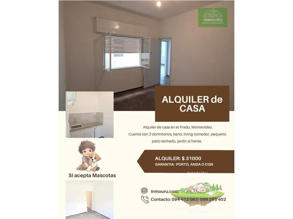 Propiedad horizontal bien ubicada en el Prado, la misma cuenta con 2 dormitorios, 1 baño, cocina, living comedor, pequeño patio techado, jardín al frente. Cuenta con gran variedad de liceos cerca y primaria a demás de muy próximo también a 2 grandes Av Millán y de Av Agraciada.