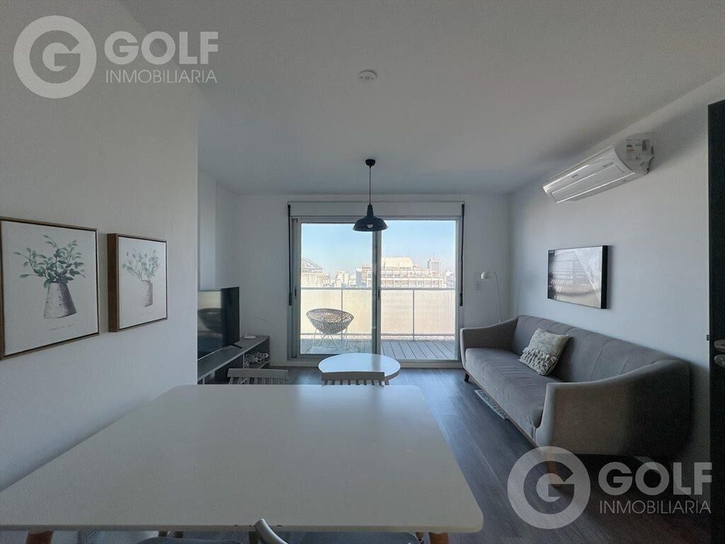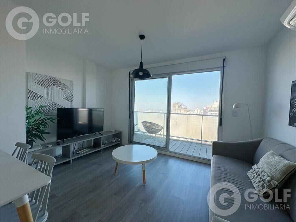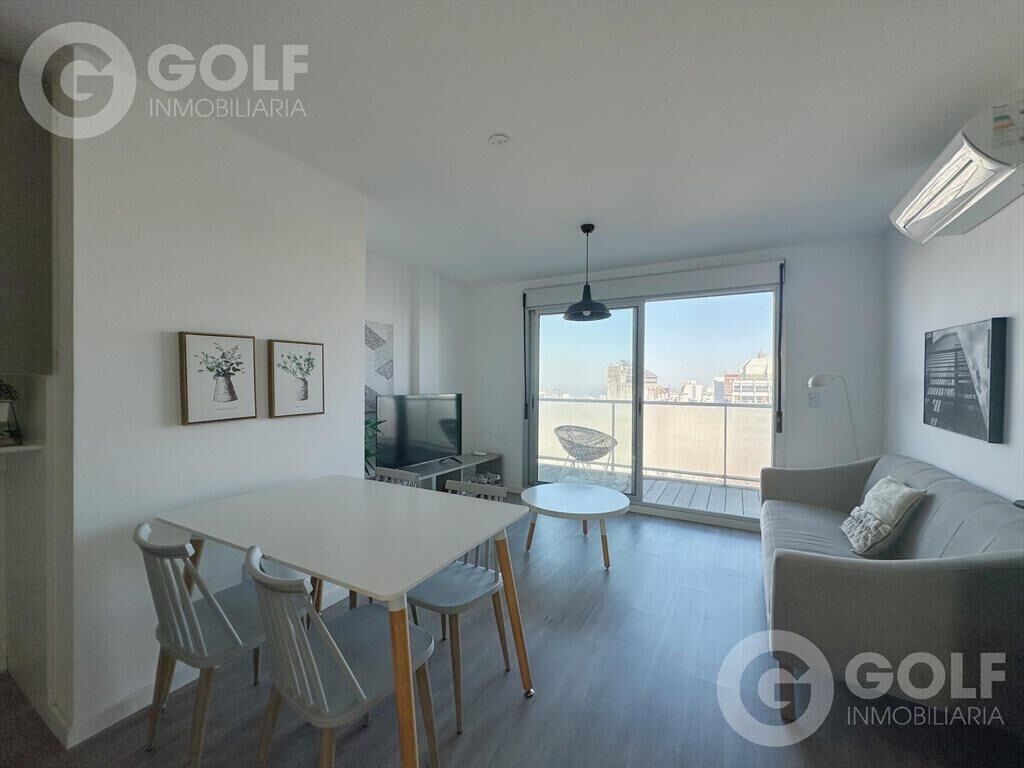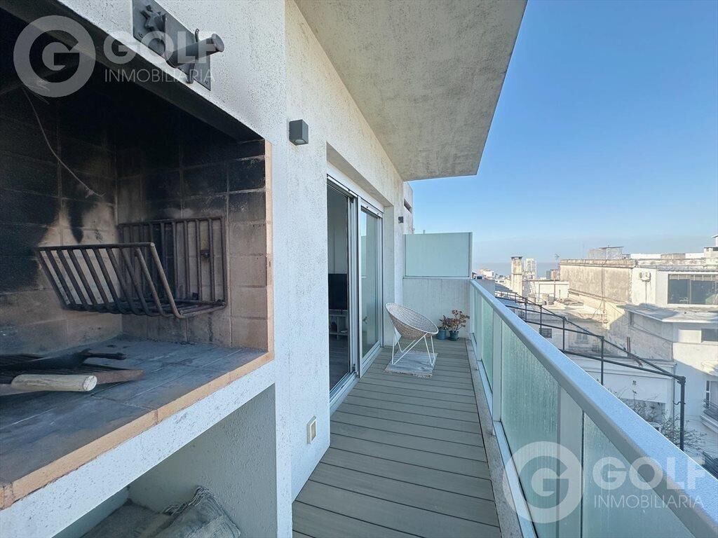 Alquiler de penthouse totalmente amueblado en el Centro  Penthouse pasante con orientación Este - Oeste, frente a la plaza Cagancha. Características de la unidad:  - Living comedor  - Cocina integrada con anafe, horno y campana - Baño completo  - 2 dormitorios con placard incluido - Terraza con parrillero exlusivo  La unidad incluye:  - Aire acondicionado en todos los ambientes  - 2 Box de guardado en sub suelo - Cortinas roller en dormitorios  - Microondas, tostadora, jarra eléctrica, heladera    El edificio cuenta con portería virtual 24hs, portero fisico 4hs de lunes a viernes y area de lavadero. INMOBILIARIA GOLF Afiliados a Cámara Inmobiliaria Uruguaya