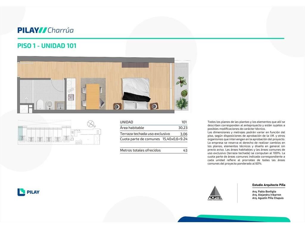 EDIFICIO CAMPIGIA PILAY I - CHARRUA  - PISO 1 ESTRENA - MONOAMBIENTE AMPLIO CON TERRAZA. COCINA AMERICANA CON DOBLE MESADA - ANAFE - CAMPANA Y HORNO EMPOTRADO. BAÑO  AMENITIS:  Hall Principal Cowork Cocheras Bicicletero Gimnasio Playroom Laundry room Barbacoa CCTV Portería remota