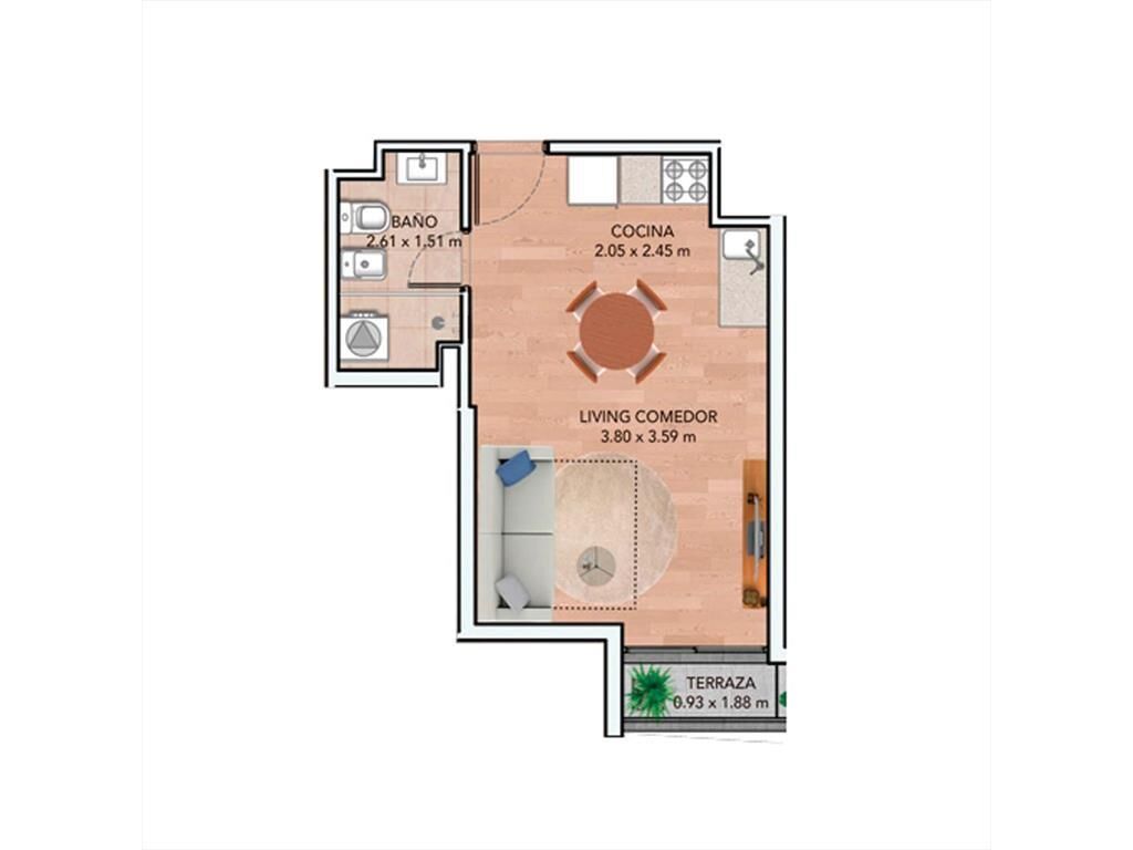 Alquiler Monoambiente con terraza en La Blanqueada