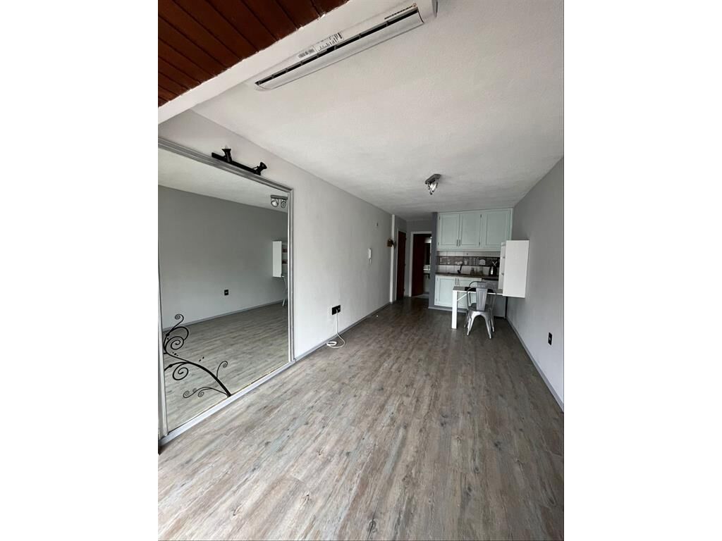Ambiente amplio con cocina integrada con barra, baño amplio completo y terraza. Pisos de vinilicos nuevos. Impecable. Aire acondicionado instalado y calefón.