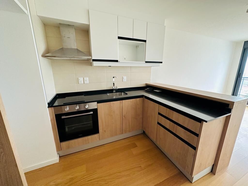 Cuenta de 33m2, terraza cómoda, placard empotrado al ingresar a la unidad, kitchenette con placares sobre y bajo mesada con barra separadora, lugar para anafe, horno y microondas. Baño completo con instalación para lavarropa y calefón.