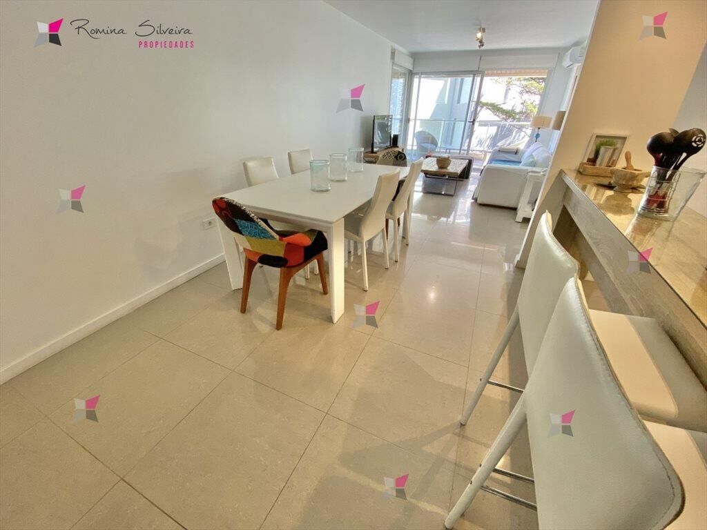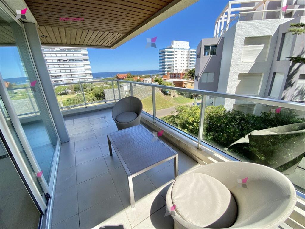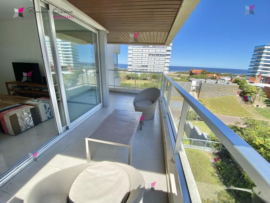 El apartamento cuenta con 2 amplios dormitorios, 2 baños uno de ellos en suite, living comedor, cocina semi-integrada, amplio balcon con vista al mar y garage en sub suelo.