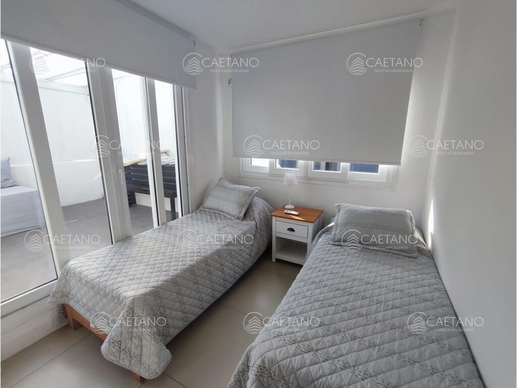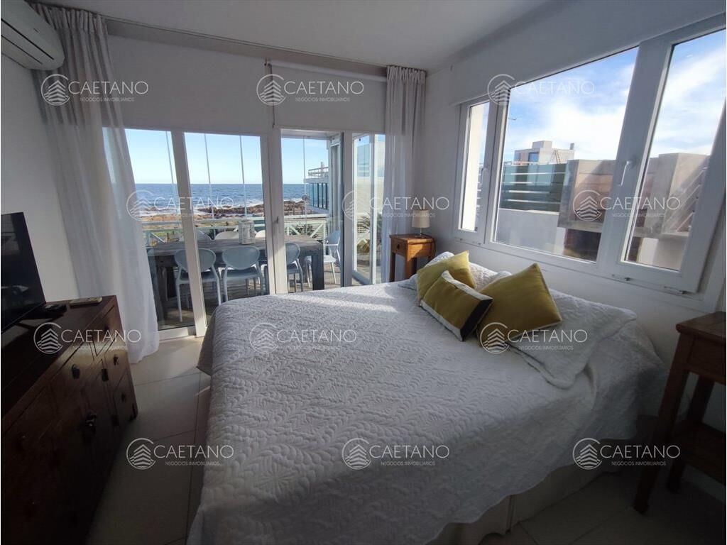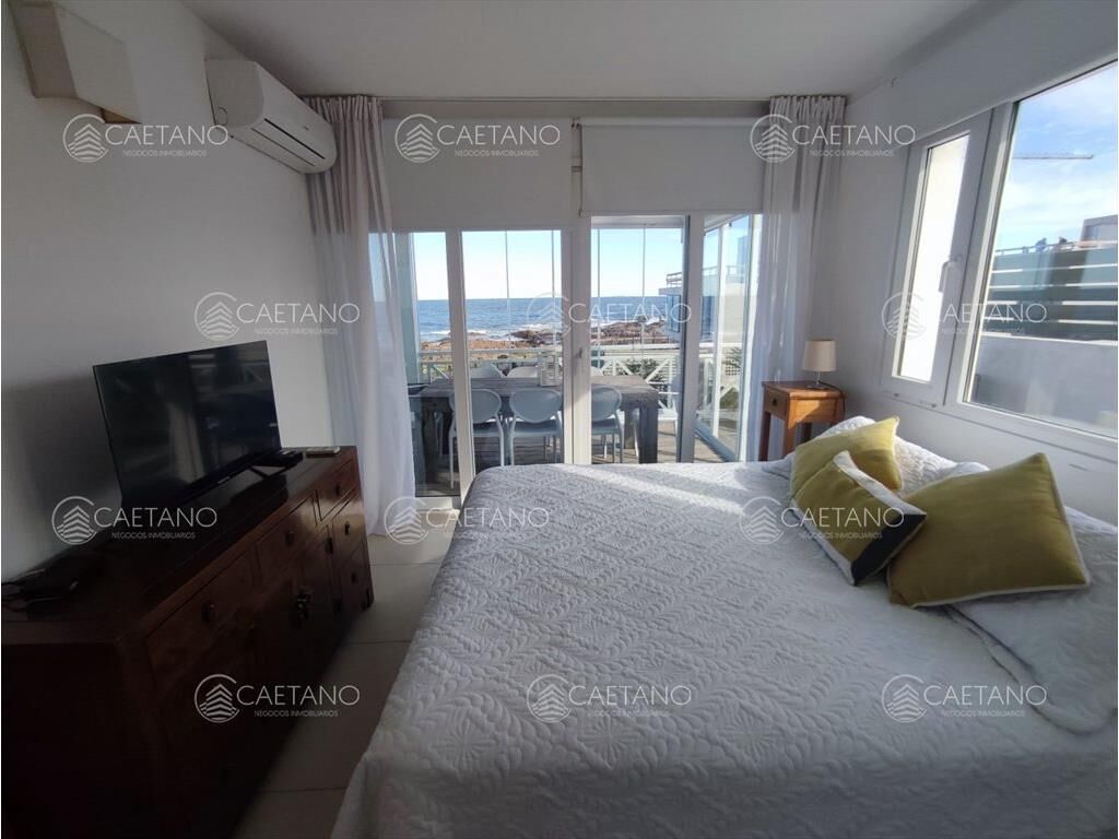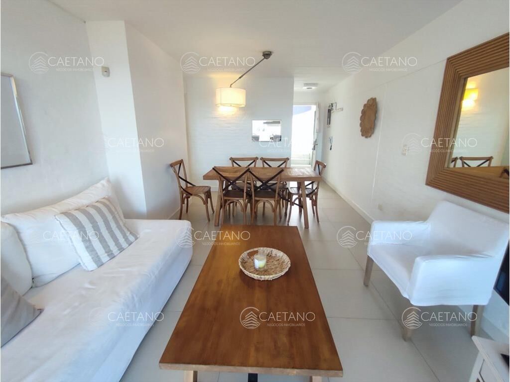 Living comedor con increíbles vistas del océano e isla de lobos. Balcón de muy buen tamaño al frente con mobiliario. Dos dormitorios, uno de ellos en suite, dos baños. Play room o tercer dormitorio con salida a terraza lateral con parrillero.