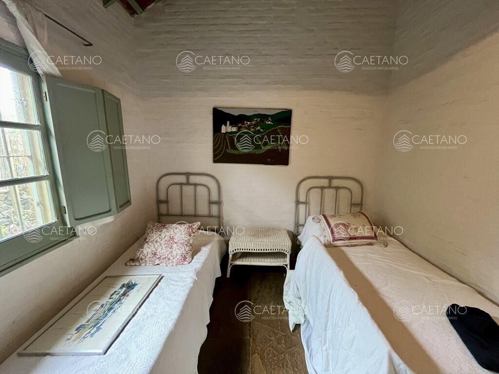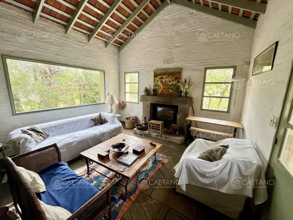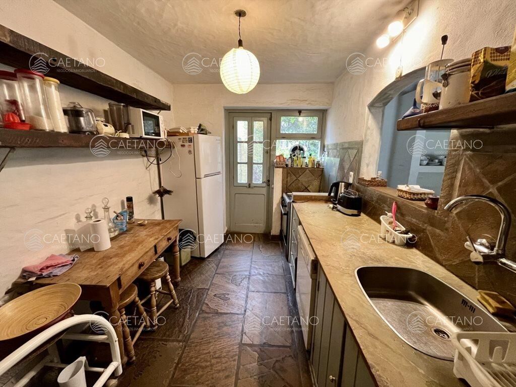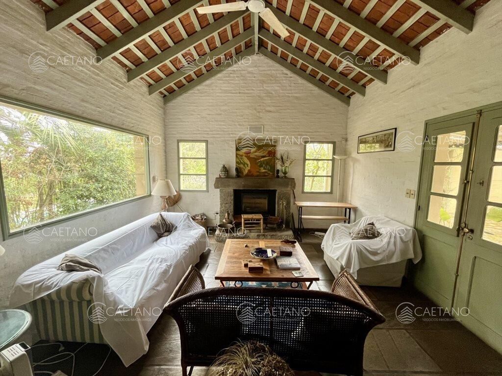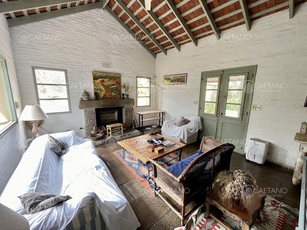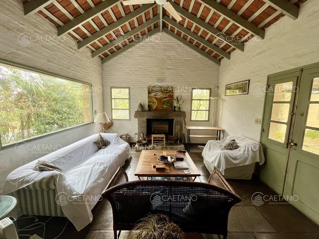 El área principal ofrece amplio living comedor con estufa a leña, dos dormitorios de buen tamaño y un baño. Cocina definida y dependencia de servicio con baño.