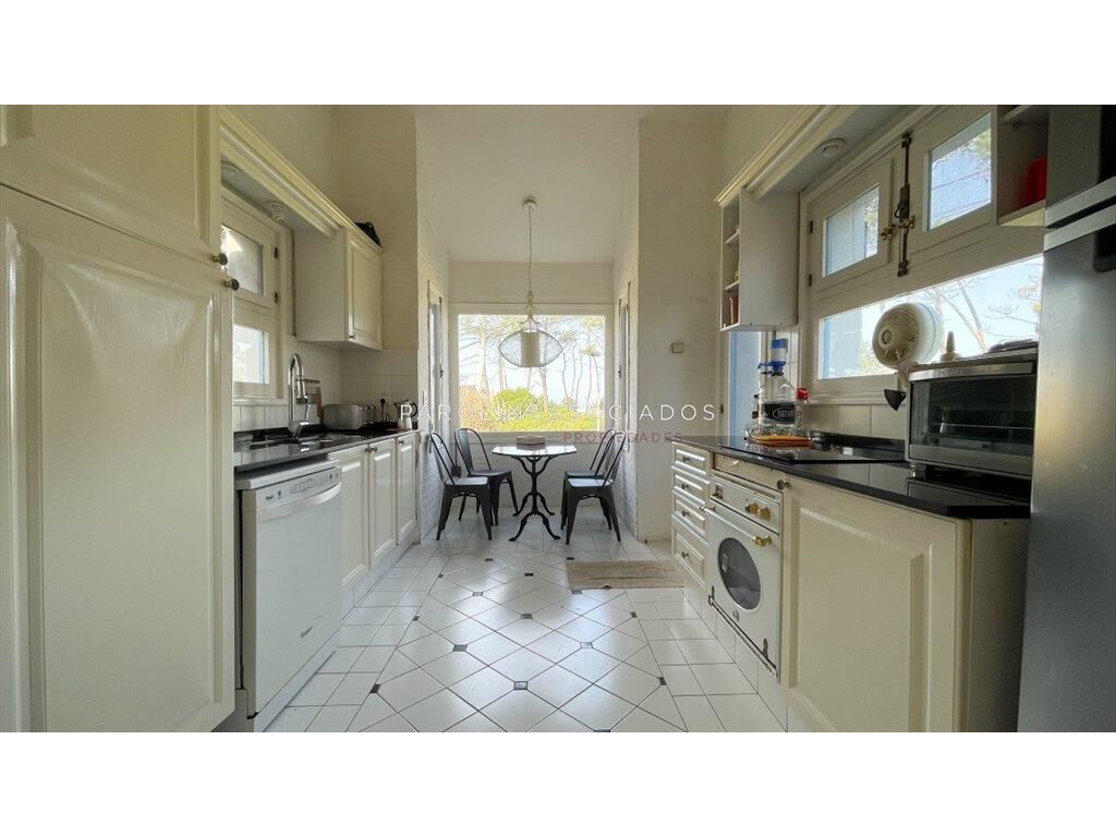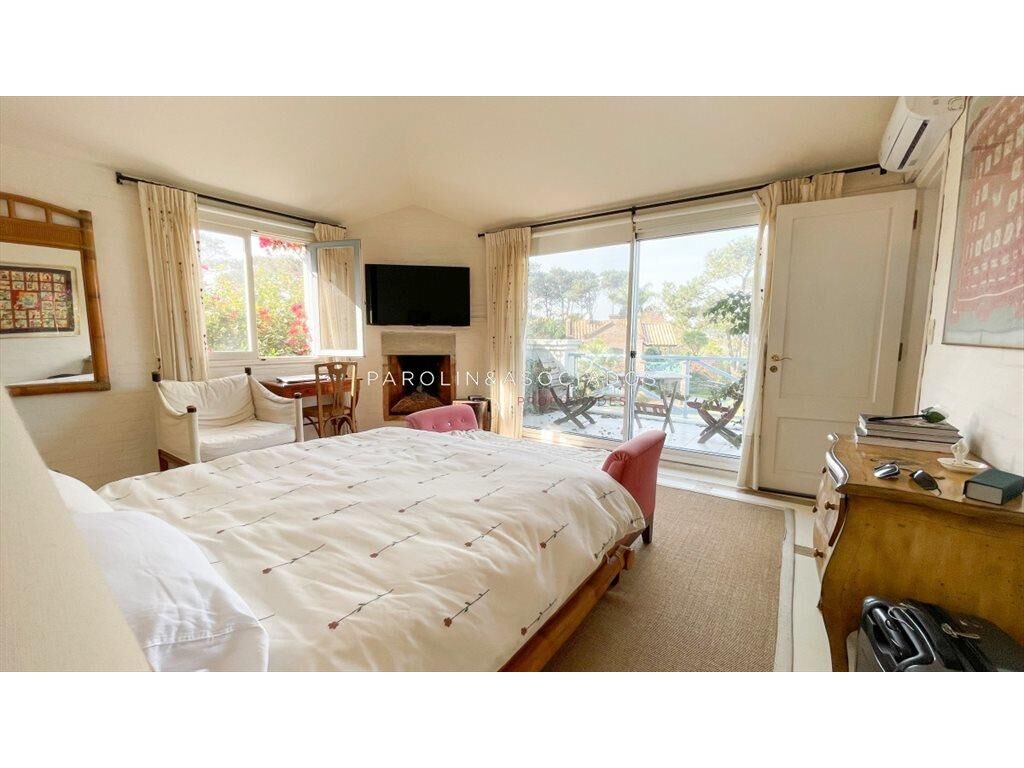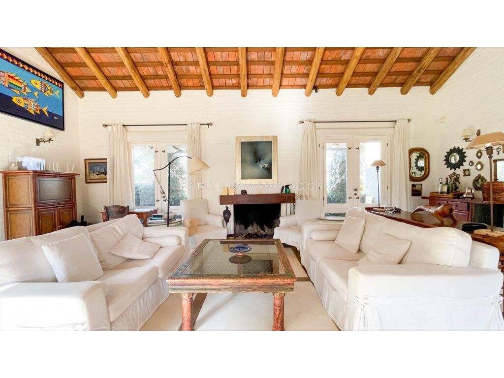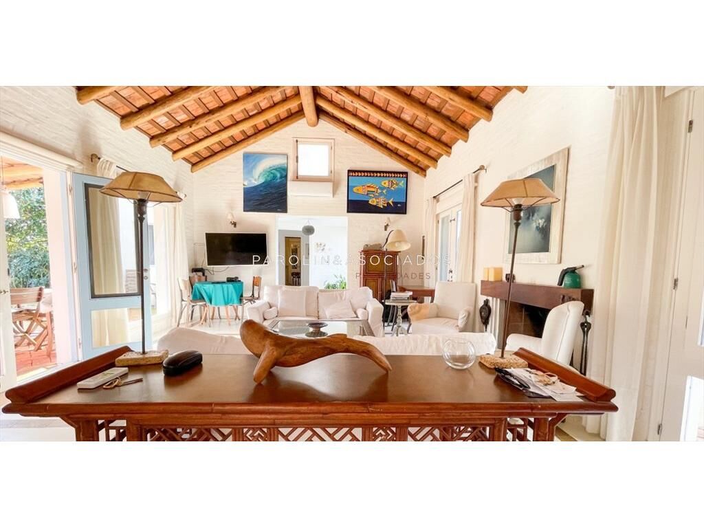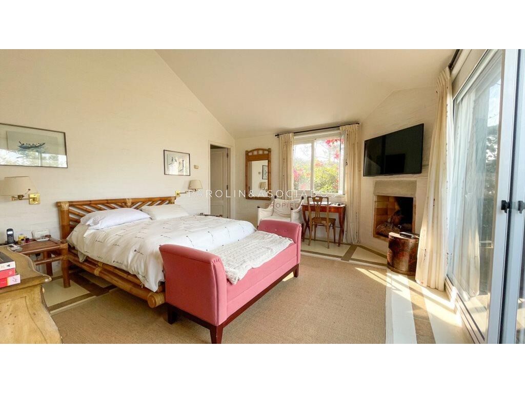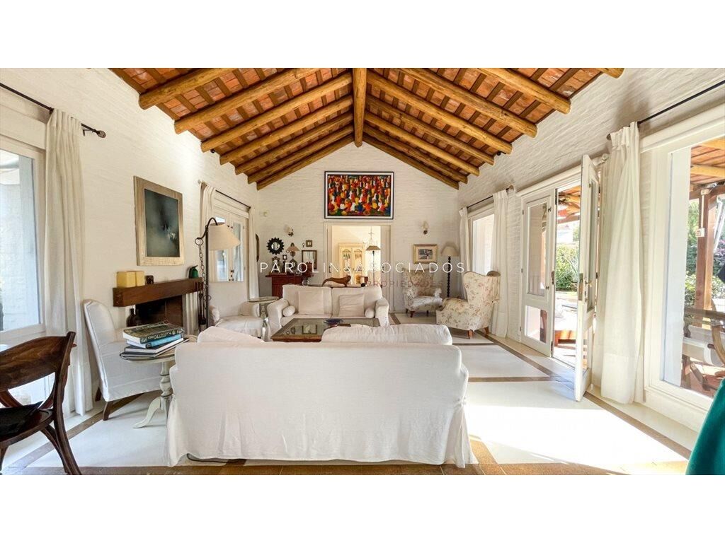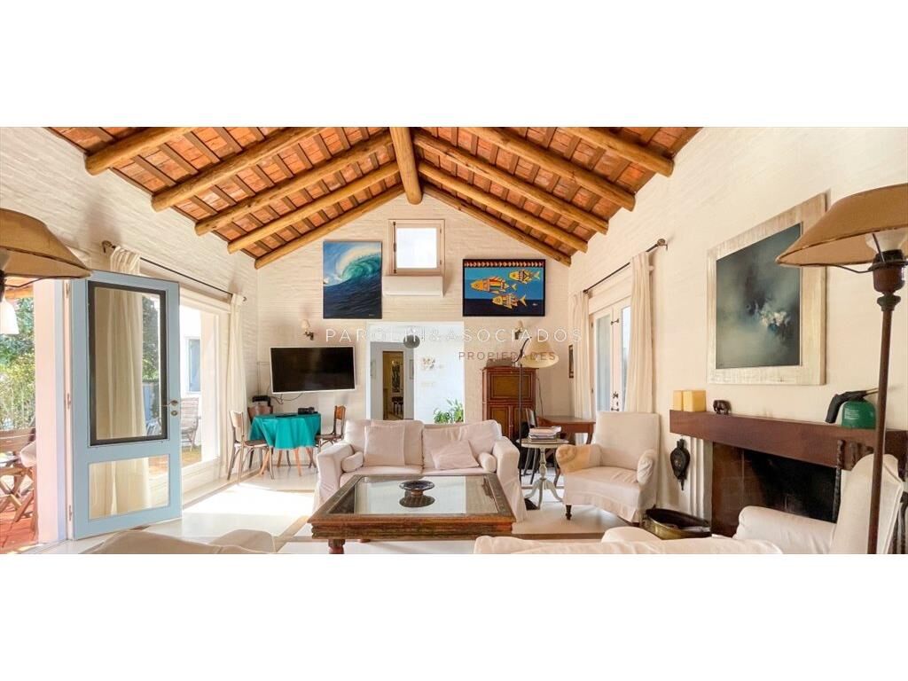 - Zona social con amplio living, grandes ventanales con vista al patio y al mar, y estufa a leña.