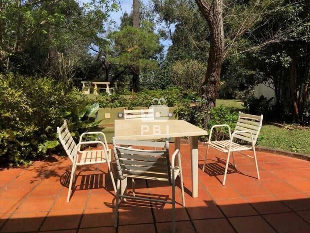 Barbacoa con parrillero, baño completo, jardin totalmente parquizado rodeado de árboles que proporcionan sombra.