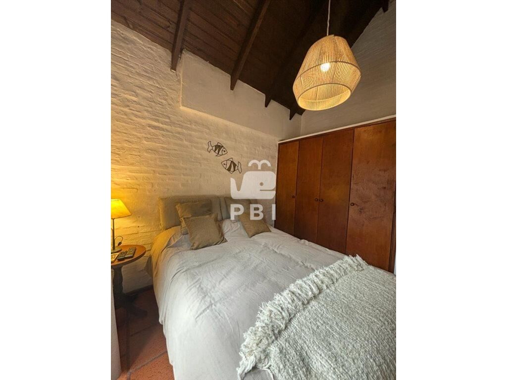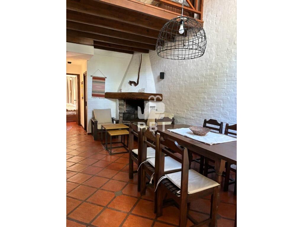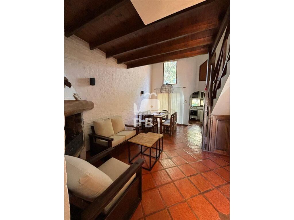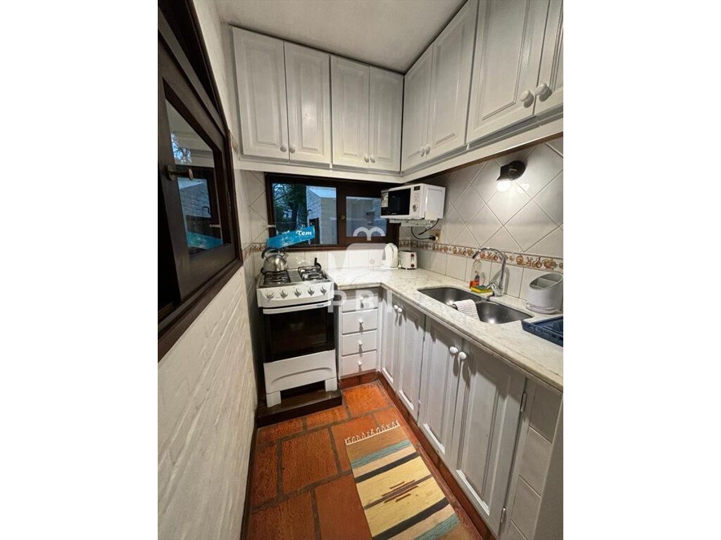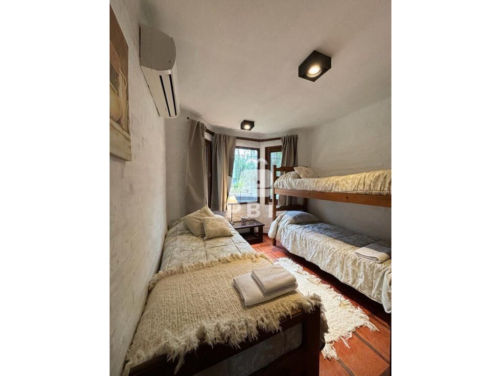 En planta baja cuenta con living comedor con TV, salida a amplio patio con parrillero techado, cocina con heladera y freezer, horno, microondas, jarra y tostadora eléctrica y utensilios de cocina, baño completo y 1 dormitorio con cuatro camas y aire acondicionado.