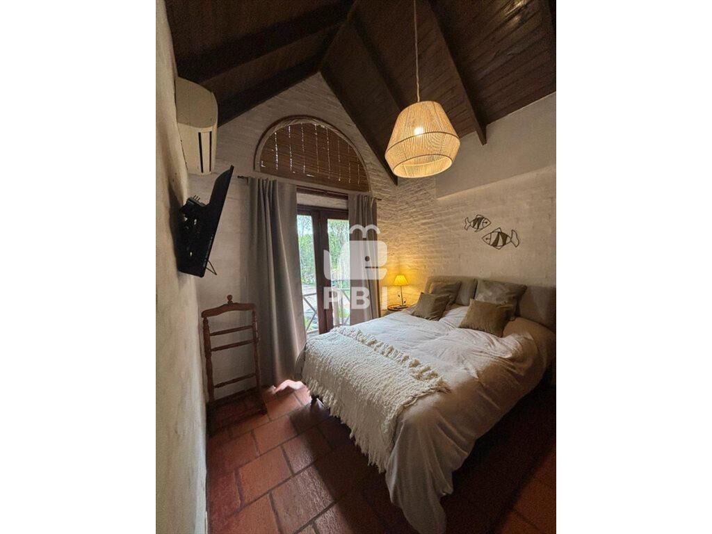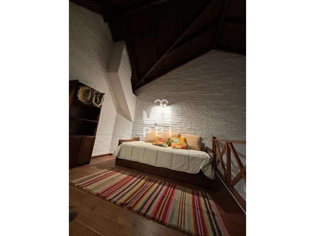 En planta alta cuenta con habitación matrimonial con TV, aire acondicionado y balcón; entrepiso balconeado al living, con dos camas 2 y baño completo.
