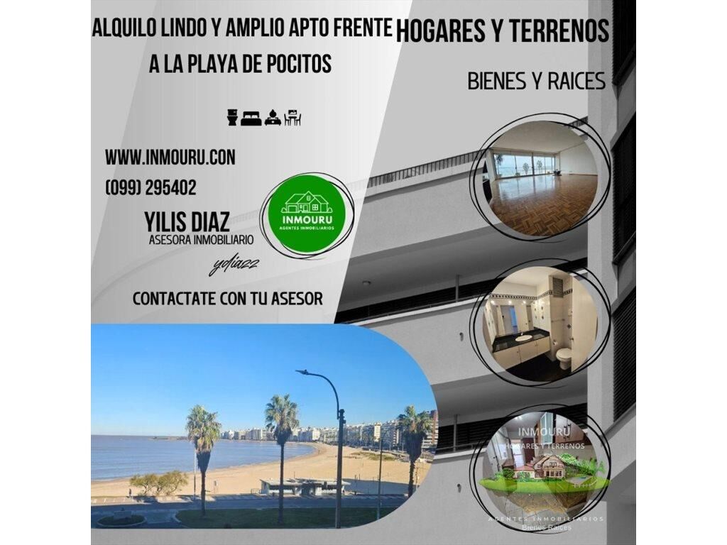Alquilo Lindo Apto frente a la Playa de Pocitos, ubicado en la Rambla Republica del Perú esquina Guayaqui , cuenta con tres dormitorios amplios y ventilados, tres baños unos de ellos en suite, cocina definida amplia con muebles aéreos y bajo mesada, un living comedor amplios con vista a la playa y un gran balcón, cuenta con garaje y acepta mascotas. También cuenta con piscina, gimnasio, áreas verde y salón de fiestas