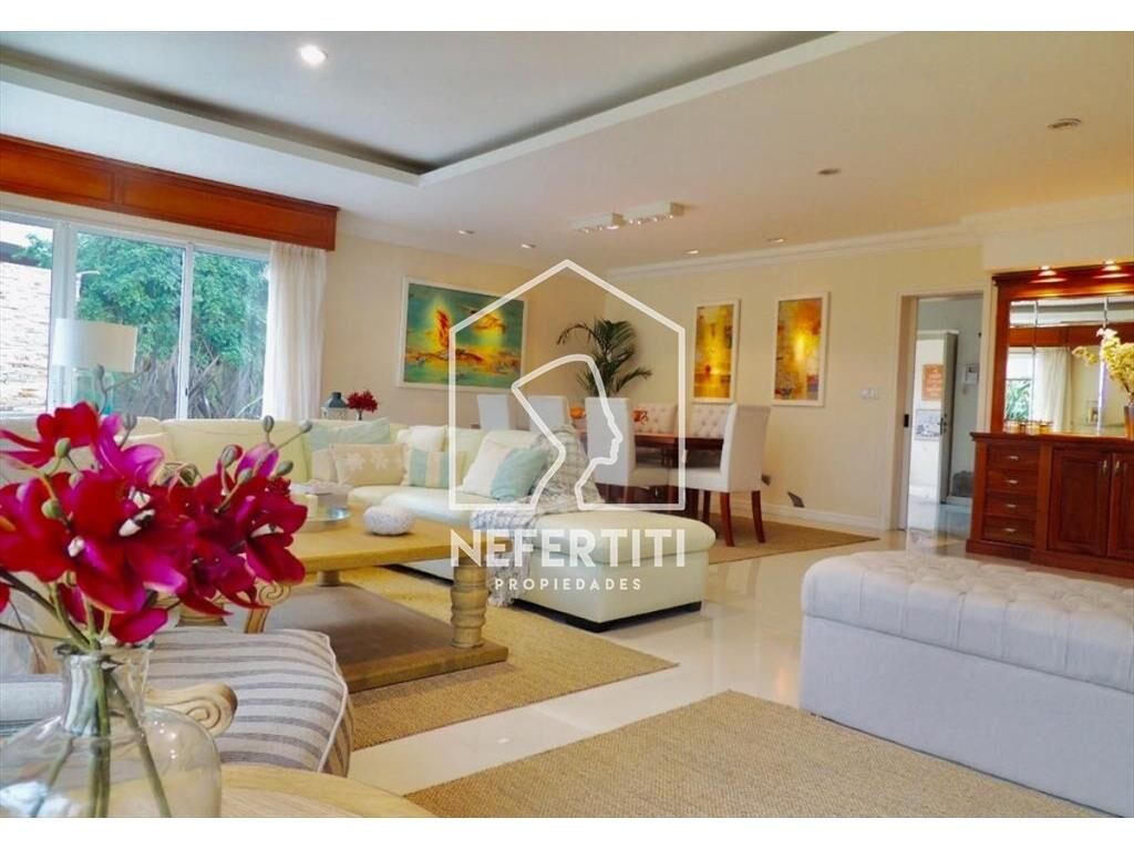 La casa consta de 2 máster suite, 2 dormitorios con baño doble, escritorio, jardín nuevo y riego automático, servicio completo, baño social, living, comedor, cocina, lavadero, calefacción central en toda la casa además de aire acondicionado en cada habitación, alarma, Antena satelital, Wi-Fi y 6 TV Smart HD, etc