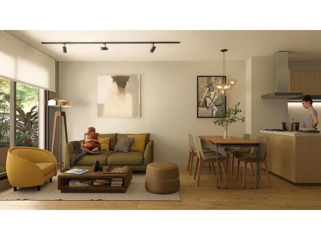 Al ingresar te recibe la cocina integrada, separada del living comedor por una barra desayunadora. Desde el estar se accede a una cómoda terraza con orientación noroeste. 1 baño completo.