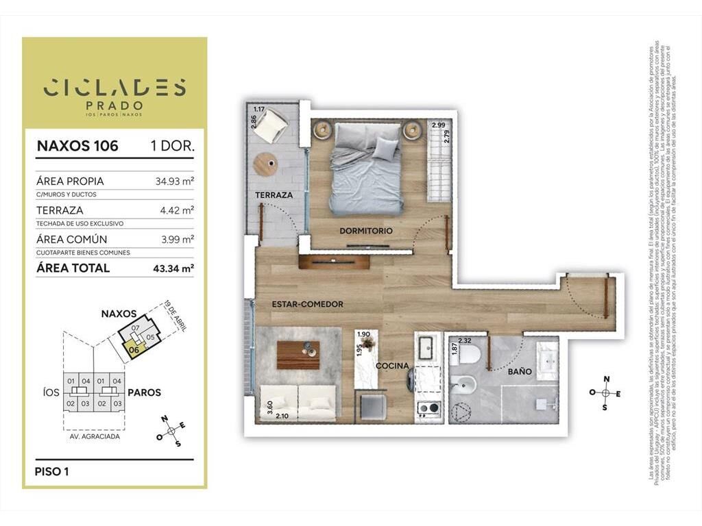 Cíclades Prado es un condominio de tres edificios de planta baja y tres pisos, (ÍOS, PAROS y NAXOS, implantado en un predio que atraviesa la manzana y le abre frente a dos avenidas icónicas del barrio: Av. Agraciada y Av. 19 de Abril.